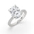 Her ring features a pave thin platinum band, designed to subtly enhance the brilliance of the center stone.