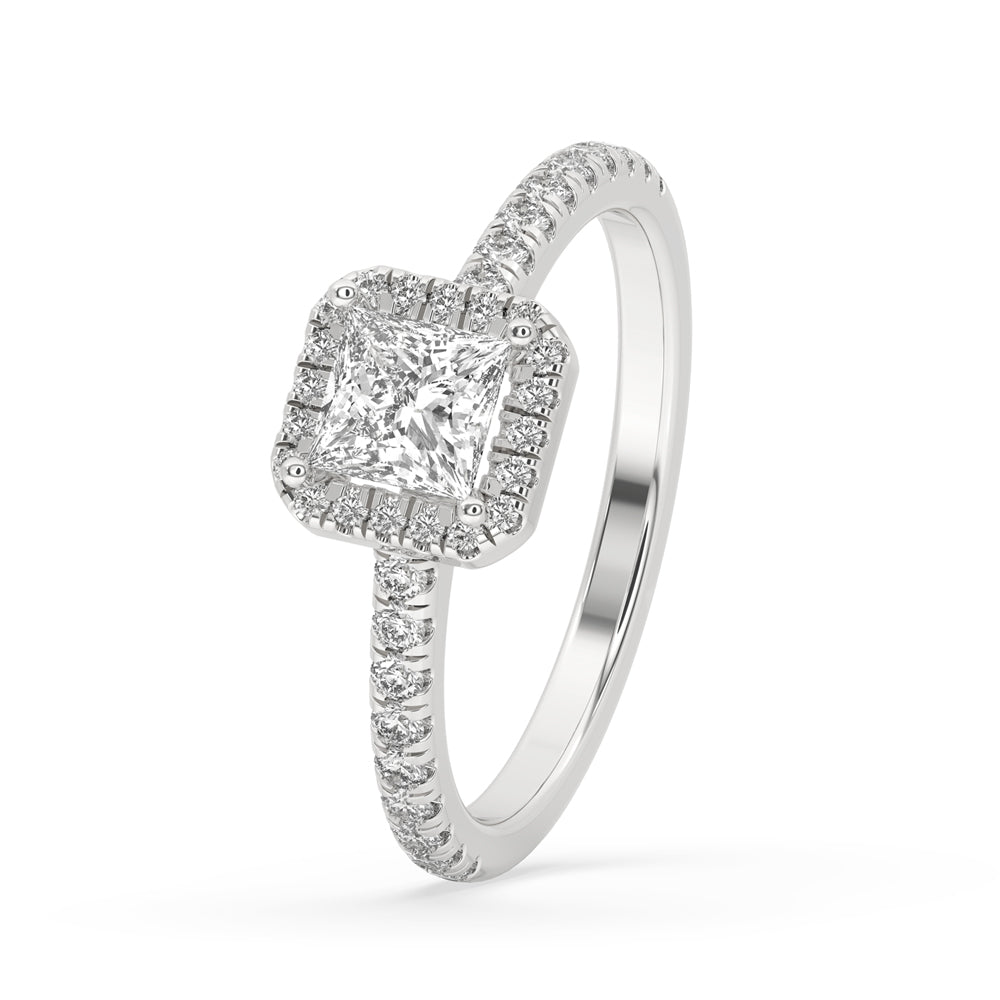 Combining the precise elegance of the princess diamond cut with the extra brilliance of a halo setting. The princess cut halo ring is a breathtaking creation. Anyone looking for a modern, yet classic design will find great value in this ring since its princess shape with halo is unique. Whether it's a princess ring or a princess halo engagement ring. This item is meant to be magnificently shining.