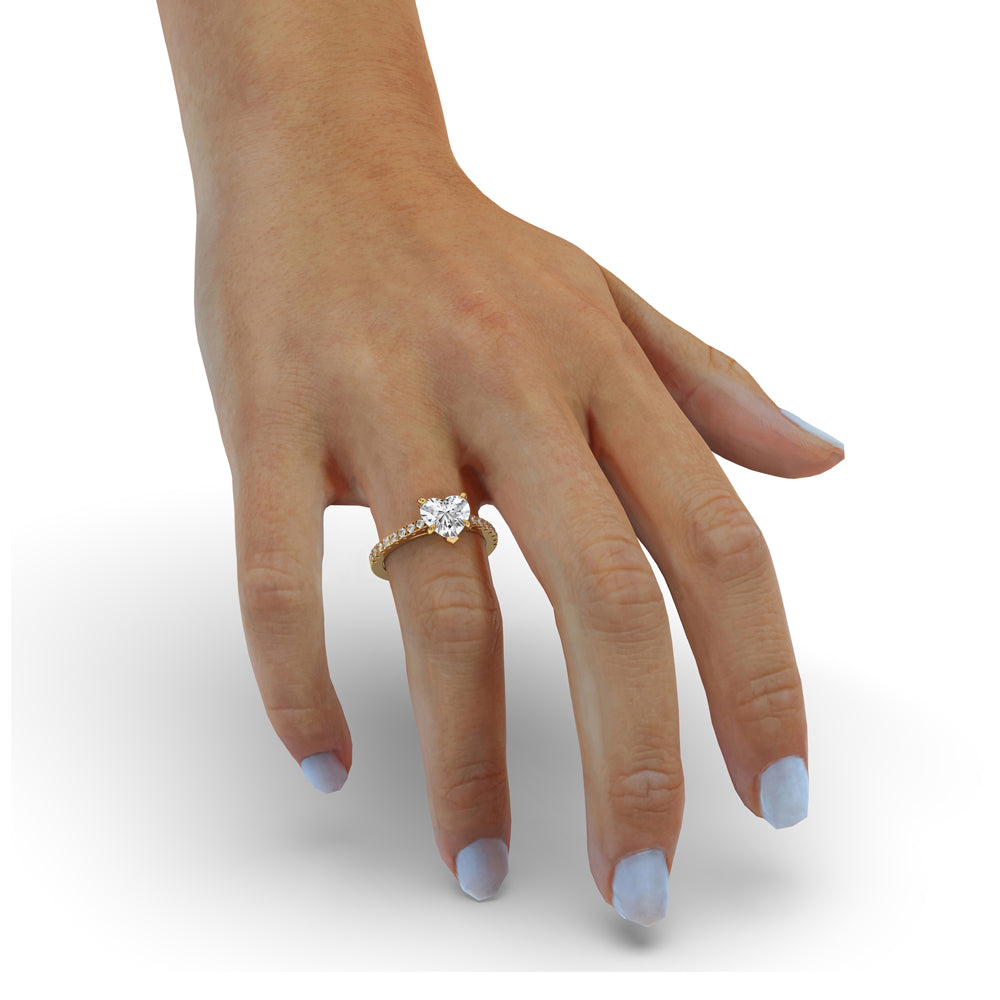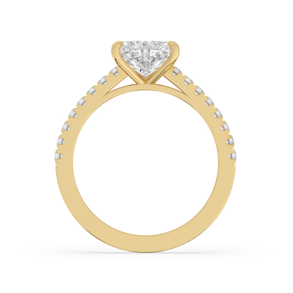 Choosing a Lab Grown Diamond or real diamond will help you to customize your heart shaped ring. Customize the metal yellow gold, rose gold, or white gold then select the ideal carat diamond engagement ring size. A traditional effect can also be achieved by selecting a cathedral ring or a pave ring setting, therefore improving the design.
