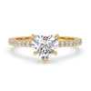 The diamond is seen brilliantly thanks to the secure claw prong setting. the magnificent cathedral setting ring raises the diamond and accentuates its shine. This ring blends elegance and sustainability whether your choice is a natural stone or a Lab Grown Diamond.