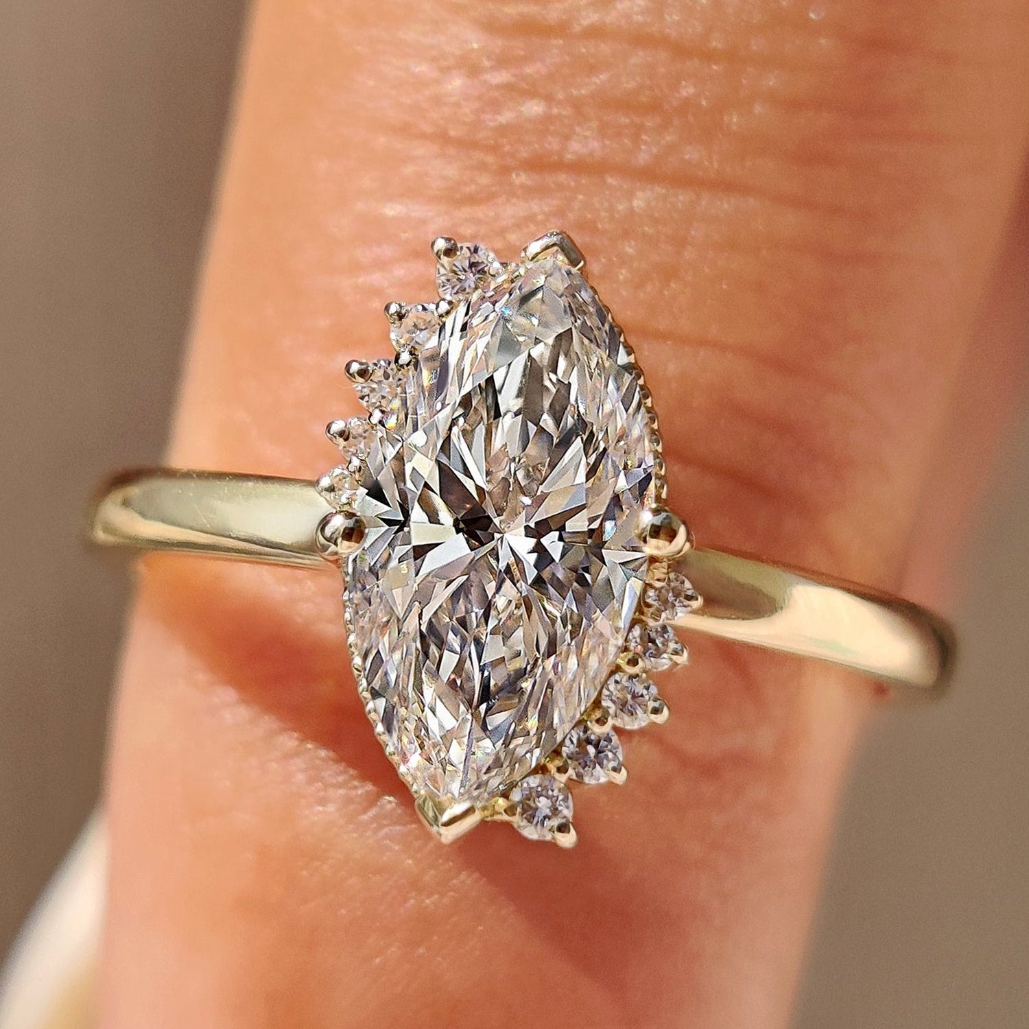 Marquise diamond rings inspired from the past include complex patterns and classic elements. These settings, which highlight the diamond's brilliance and provide a nostalgic touch, exhibit engagement rings six prong pave and hidden halo. For individuals looking for distinctive and sophisticated handcrafted rings, Caratdiamonds carries handcrafted selections.