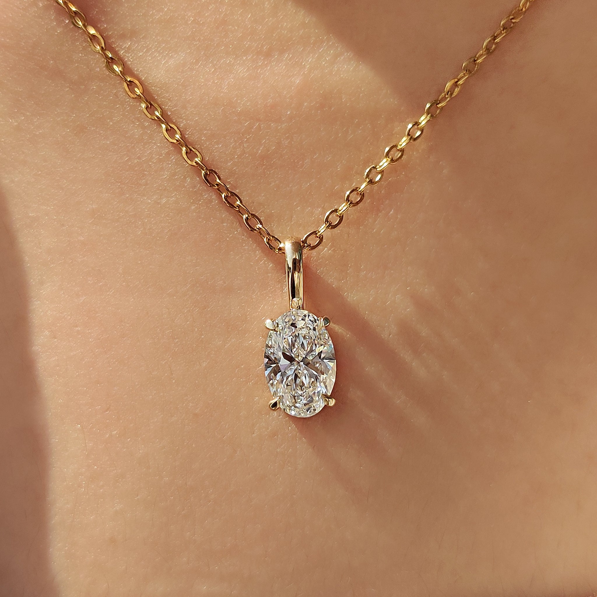 Oval diamond pendants evoke imperial moons, their elongated facets glowing with regal mystery. Suspended in lavish settings or pure solitude, they grace your décolletage with opulent portals to celestial thrones.