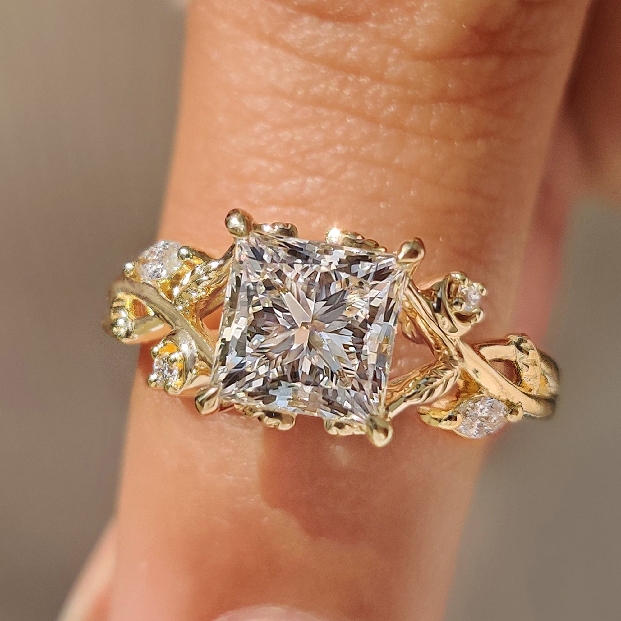 Their modern charm and crisp edges define the gold diamond princess cut engagement rings. Princess cuts have a geometric appeal unlike conventional round diamonds that seems both futuristic and timeless. Their angular form makes them perfect for many creative environments as well.