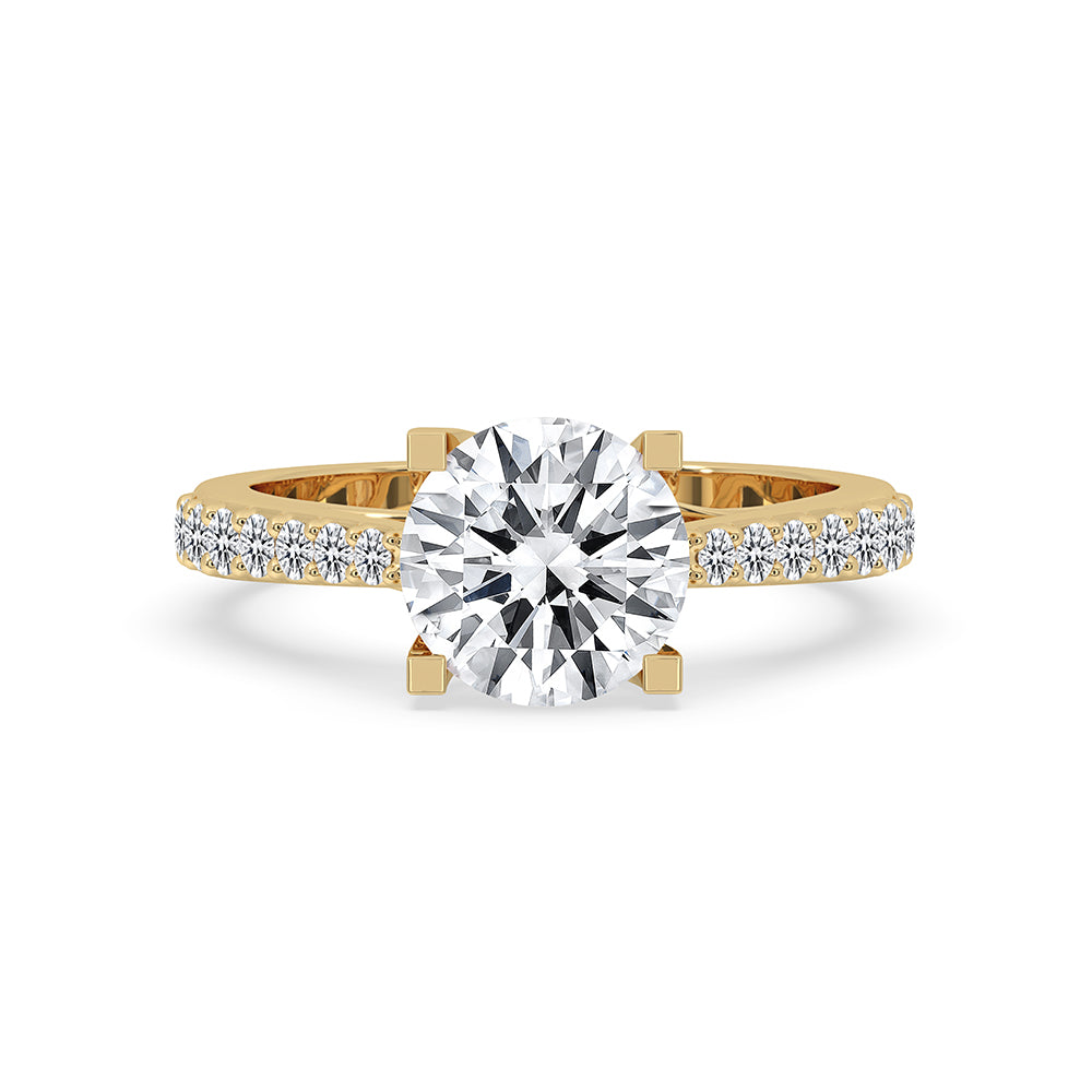 For individuals who value brightness and detail, Round Pave Engagement Ring presents an elegant and fashionable option. Moreover, held firmly with a prong setting ring, this round pave engagement ring boasts a magnificent round cut diamond ring design. Made in exquisite gold, it is accessible as a yellow gold engagement ring, combining appeal with daily wearability. Every piece uses a certified Lab Grown Diamond for a brilliant and ethical glitter.