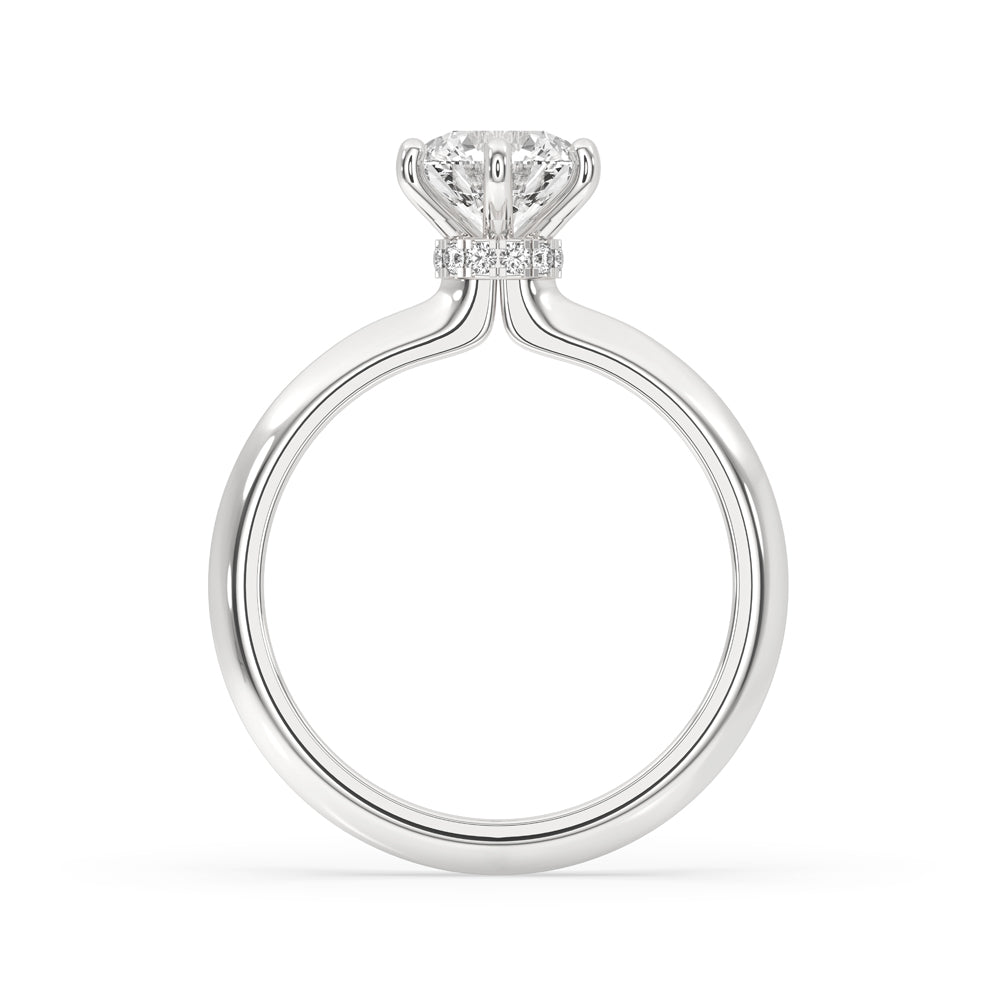 For engagements, anniversaries, or other significant events, this six prong diamond ring provides the perfect gift. Its classic form guarantees it will be loved always with a knife edge ring and hidden halo ring setting. Whether you are giving a round diamond ring or 6 prong wedding ring, this item has value and grace.