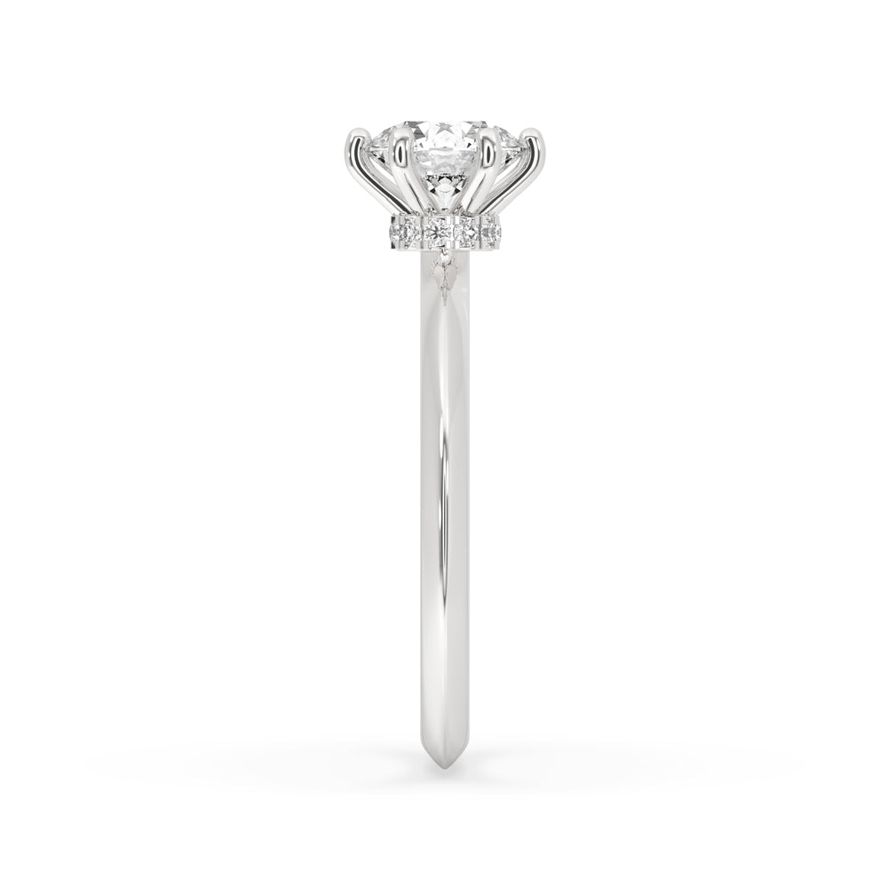 The Six Prong Engagement Ring provides unparalleled personalizing, security, and workmanship. Built to last with IGI certified diamonds and a safe 6 prong ring style, this band is A hidden halo engagement ring combined with a traditional round cut diamond guarantees that this band will be a lasting treasure.