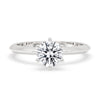 - Six Prong Engagement Ring with a classic round cut diamond centerpiece.