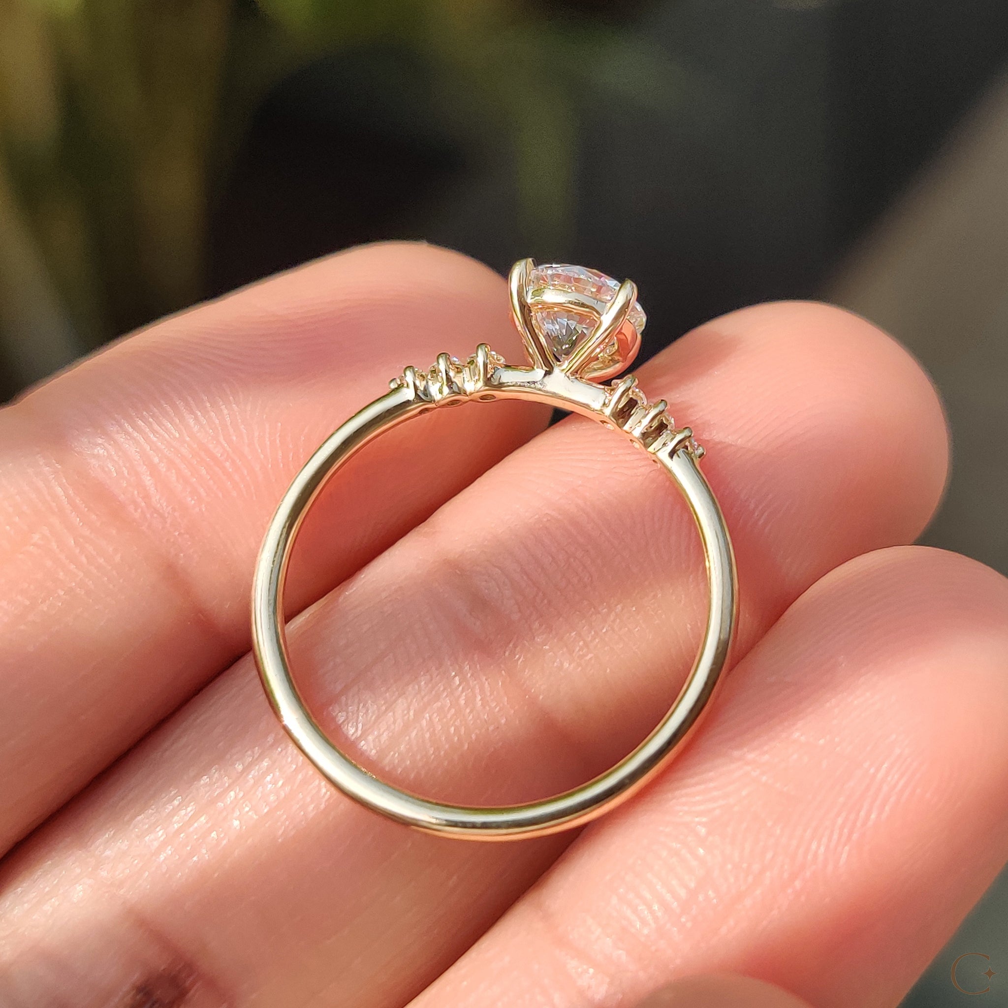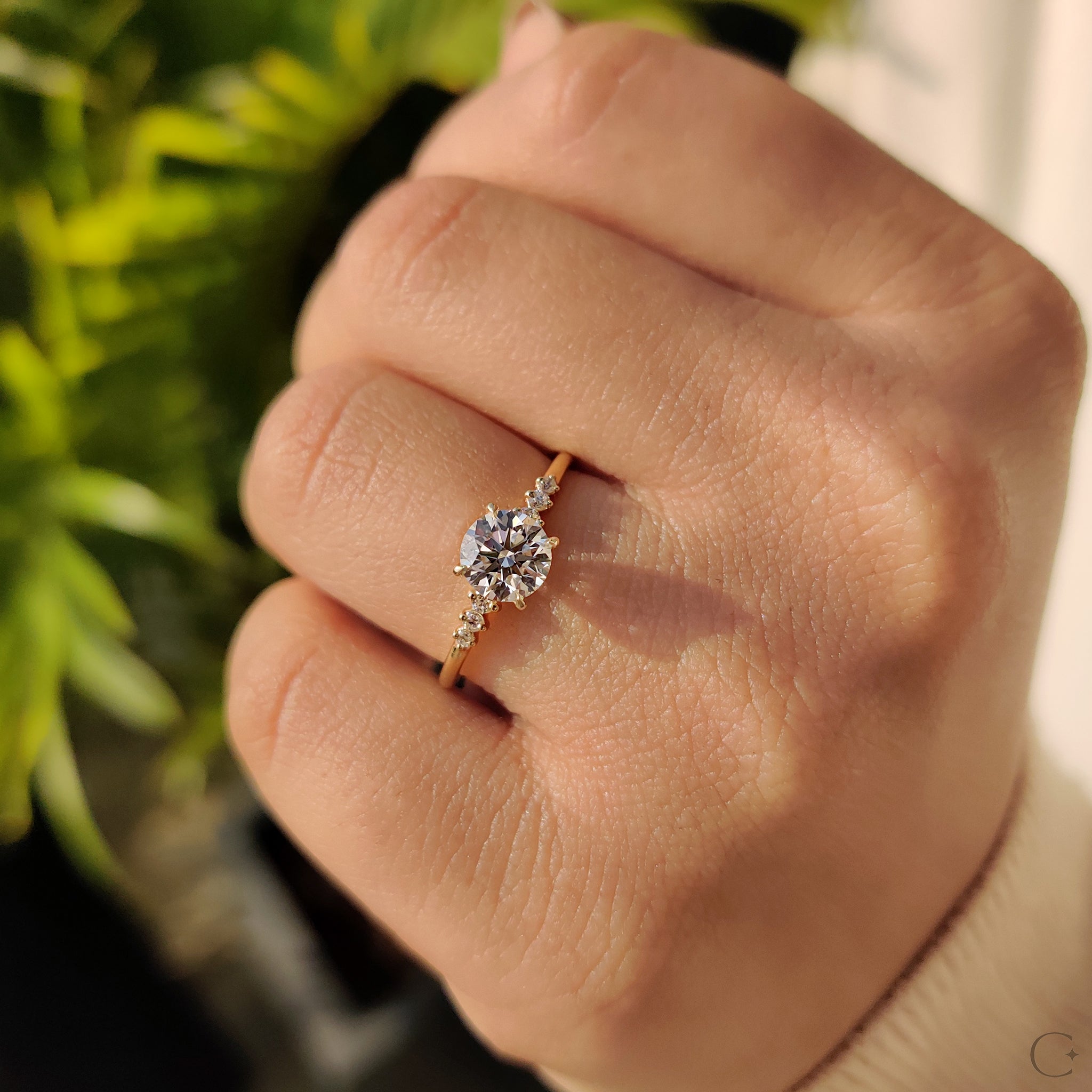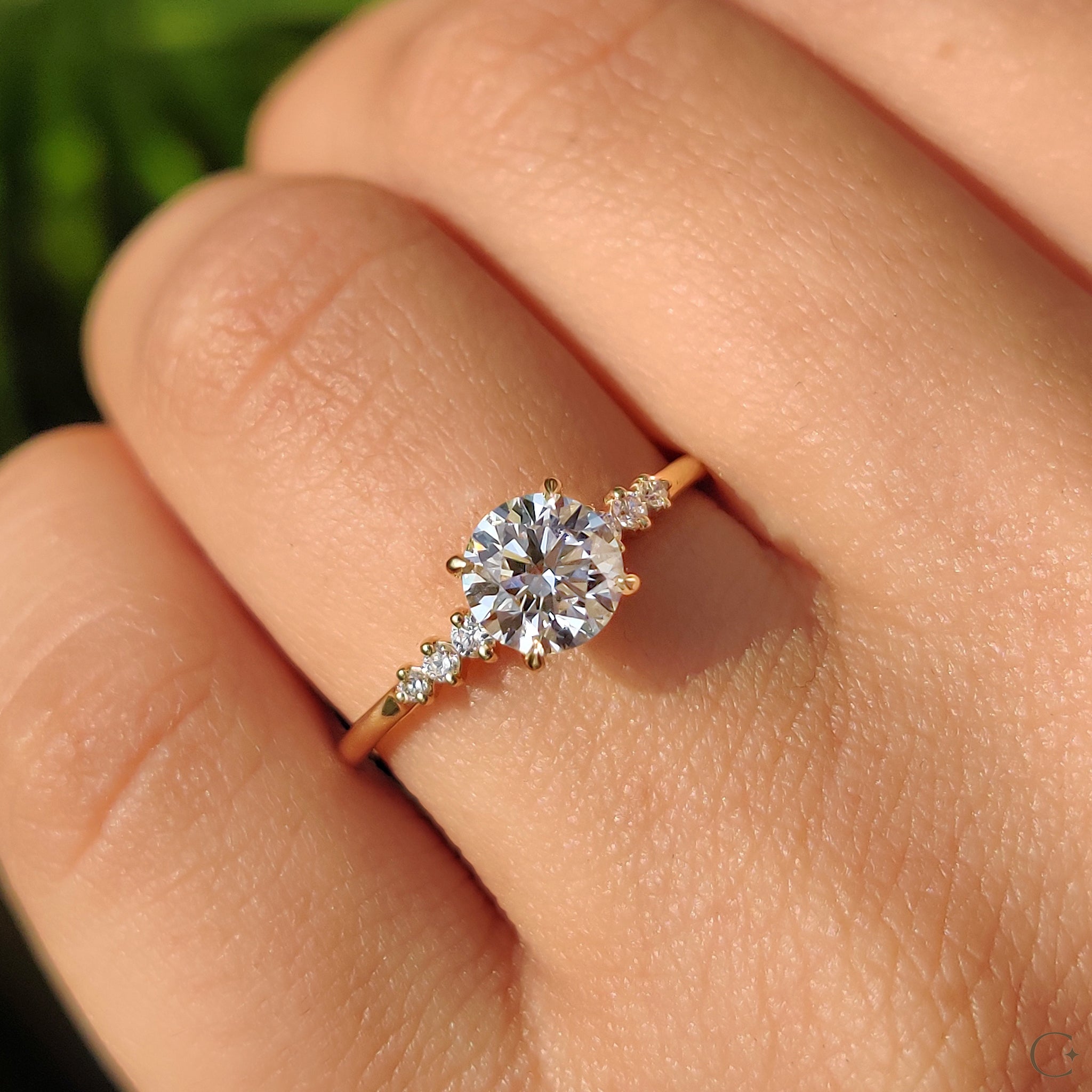 - Includes 7 Round Cut Side Stones for balanced brilliance