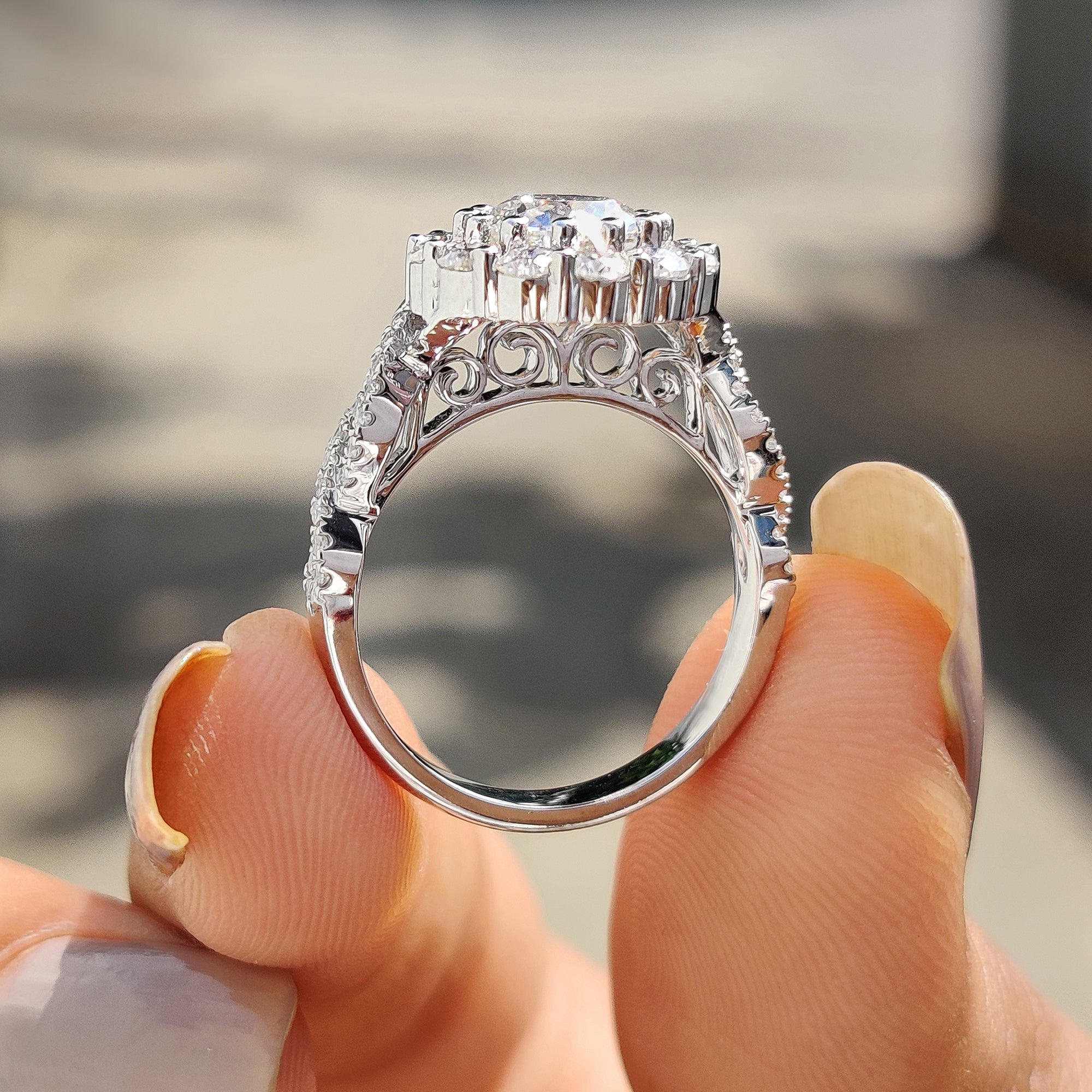 Choose from a variety of stones, including a Moissanite ring. Select your preferred band style, such as a twisted pave band or halo round cut ring. Personalize your carat diamonds ring with custom engraving for a meaningful touch. The Art Deco Engagement Ring offers the perfect balance of timeless beauty and modern elegance, making it a cherished symbol of love.