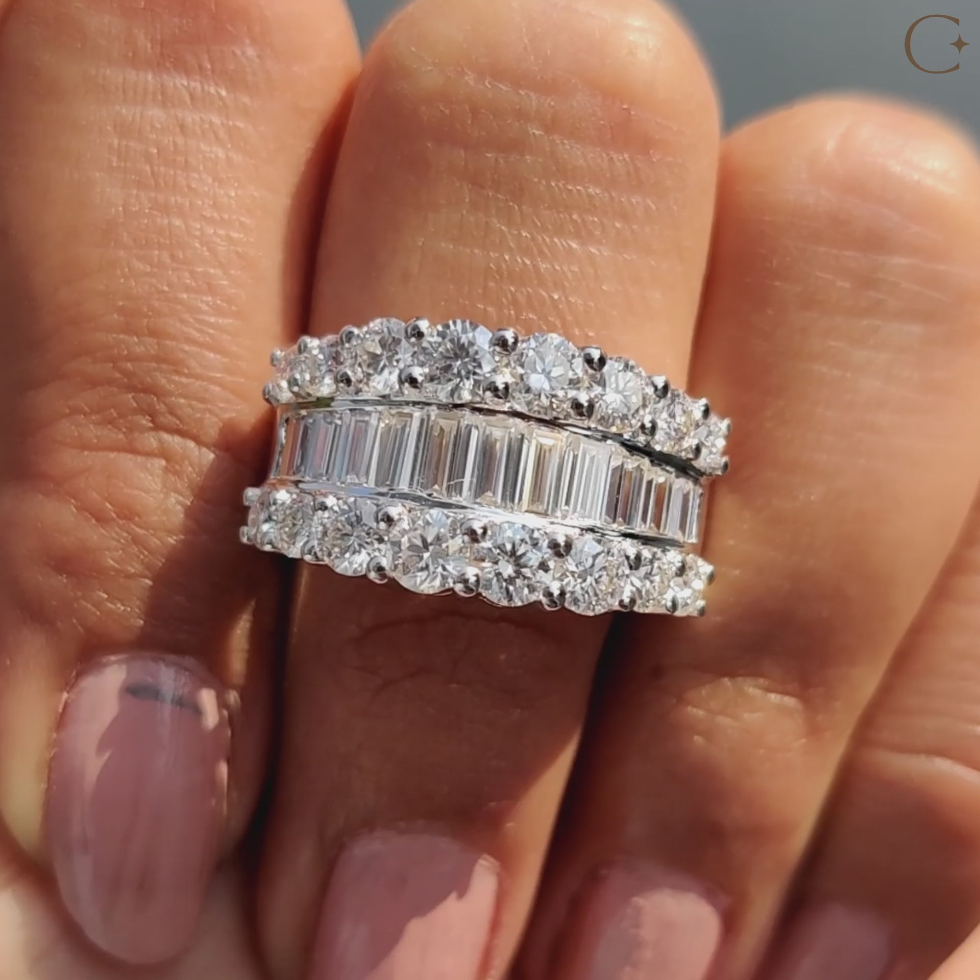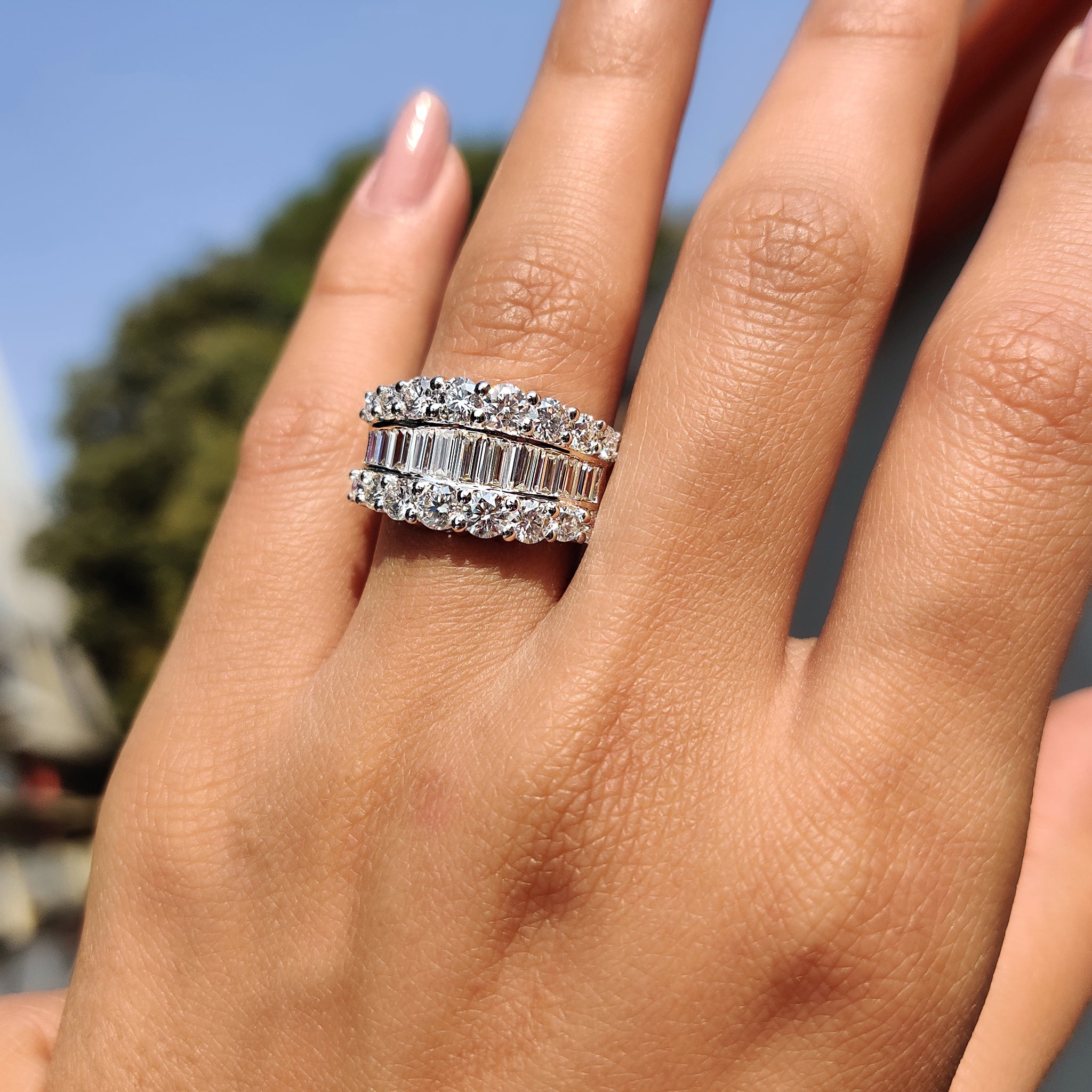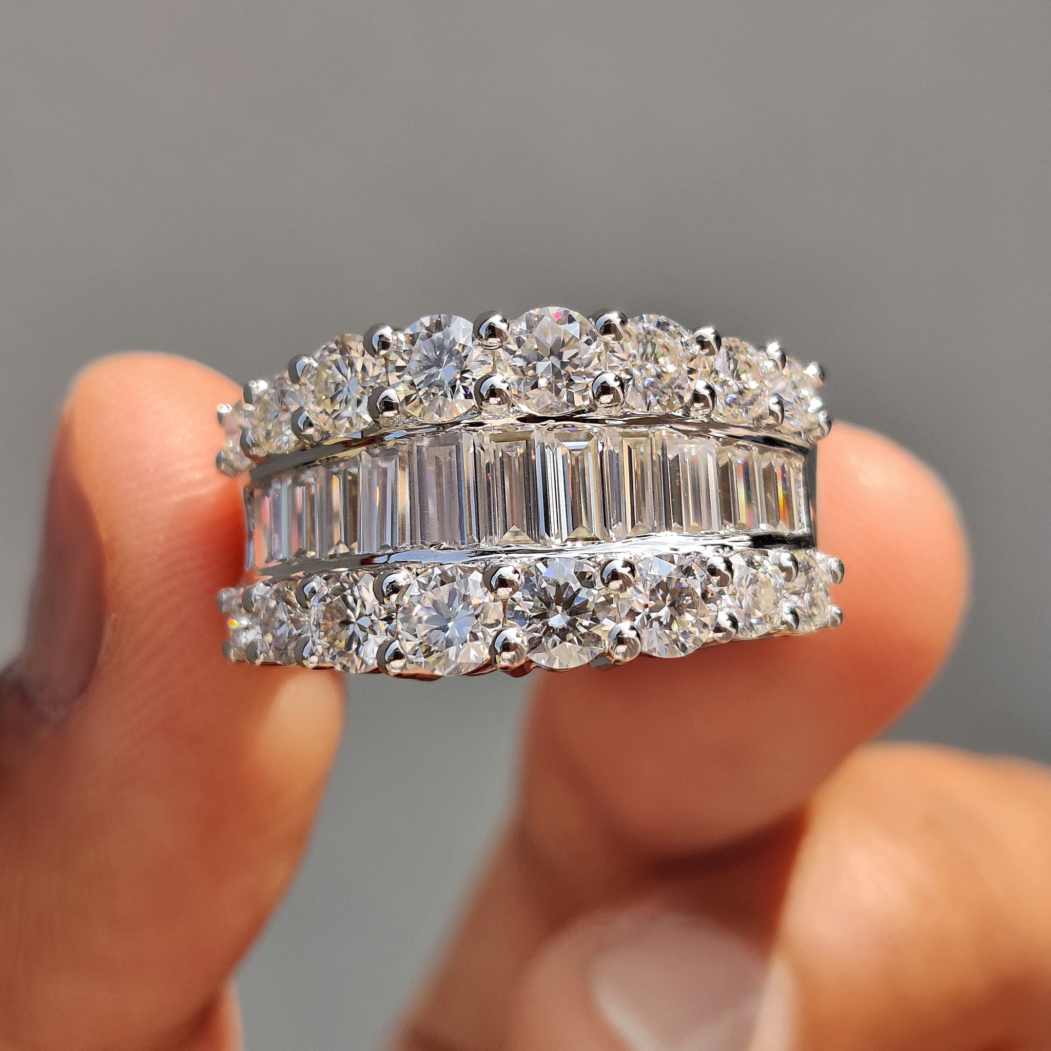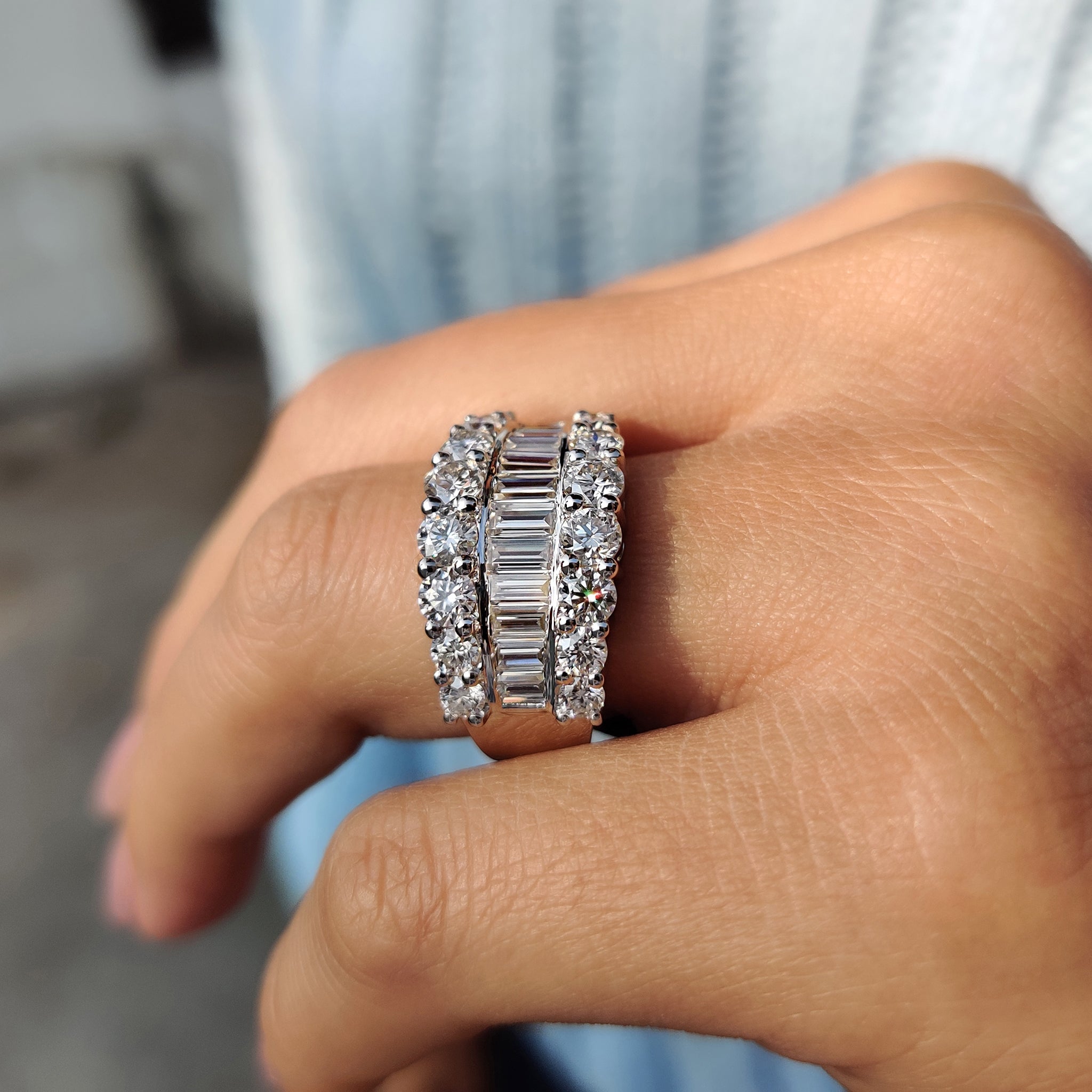 - Baguette and Round Wedding Band with a structured layout