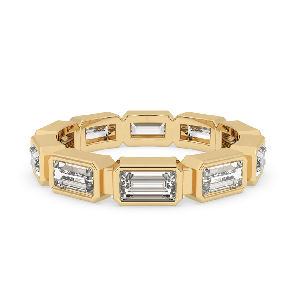 Perfect symbol of love and commitment, the bezel wedding band mixes classic design with contemporary sophistication. Its bezel setting firmly keeps every stone, guaranteeing long lifetime without sacrificing brilliance. This design has unparalleled beauty and elegance whether your preferred bezel set wedding band or a slim baguette wedding band.