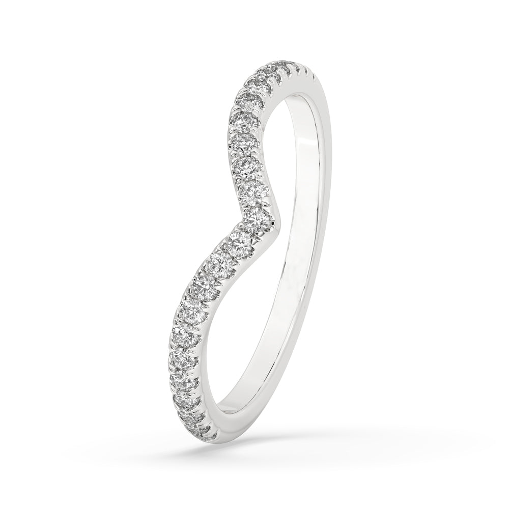 This design effortlessly accentuates your style whether your preferred round diamond wedding band or a chic stacking diamond band. Customizable to fit your tastes, the chevron wedding ring offers a strong yet understated choice. This ring can be customized with a round diamond band or even choose the Lab Grown Diamond for a more environmentally friendly substitute.