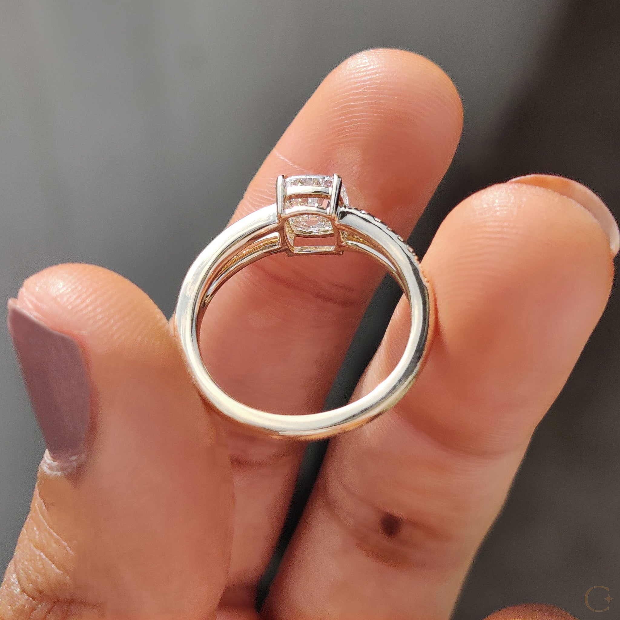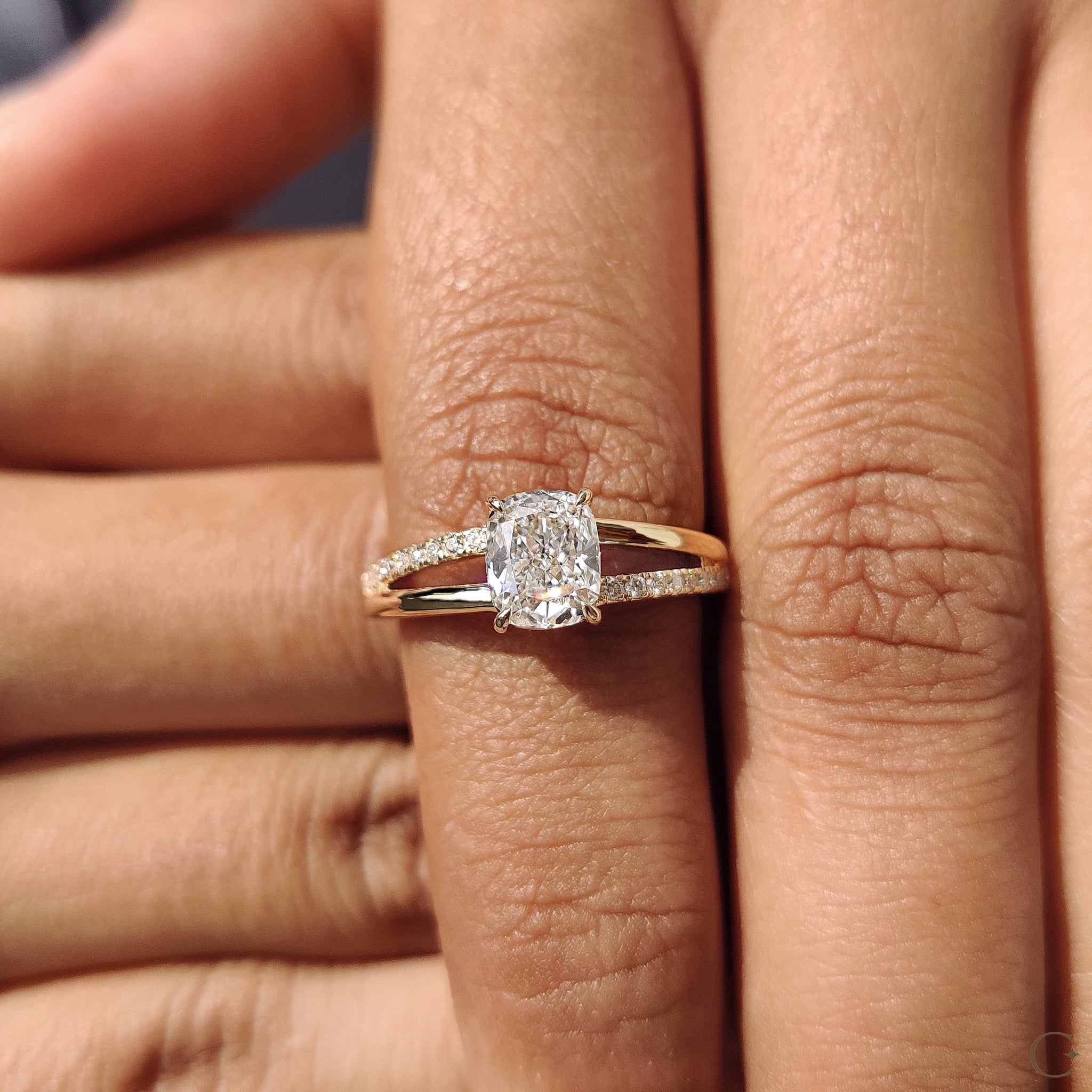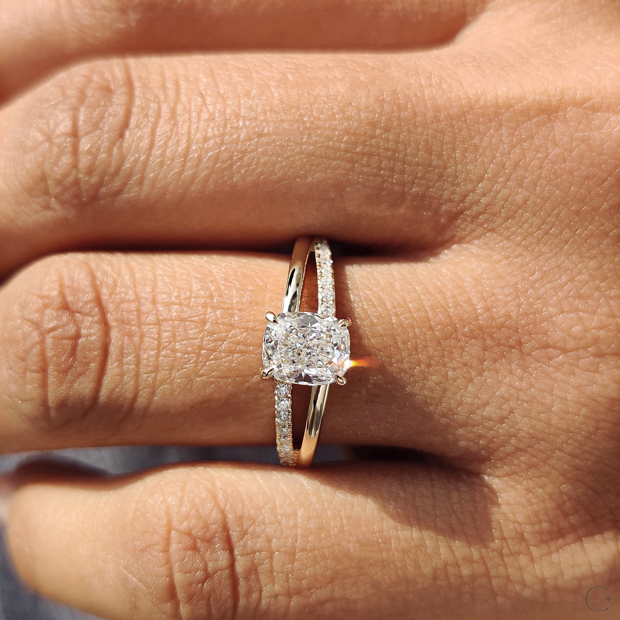Cushion Cut Diamond Engagement Ring In Split Pave Style