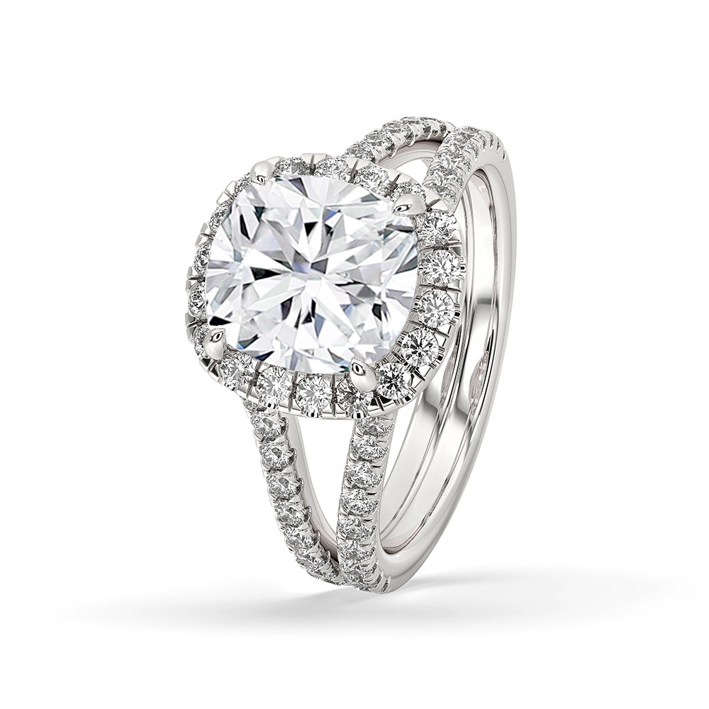 Every detail of this custom engagement ring is designed to impress. The split shank pave engagement ring style enhances the brilliance and adds a unique look. You can also customize your ring with different carat weights and metals. It's not just a ring it’s a statement of your personal love story.