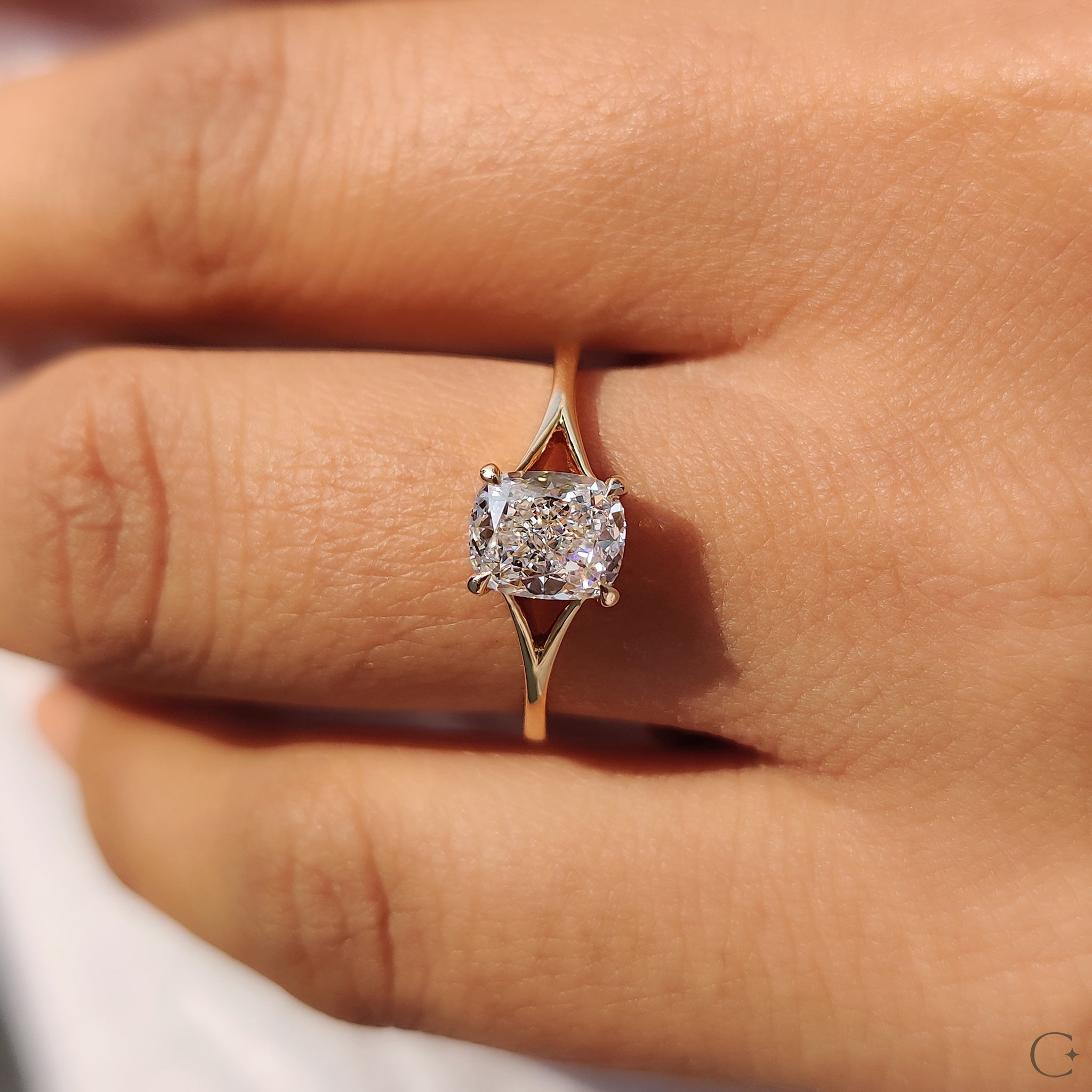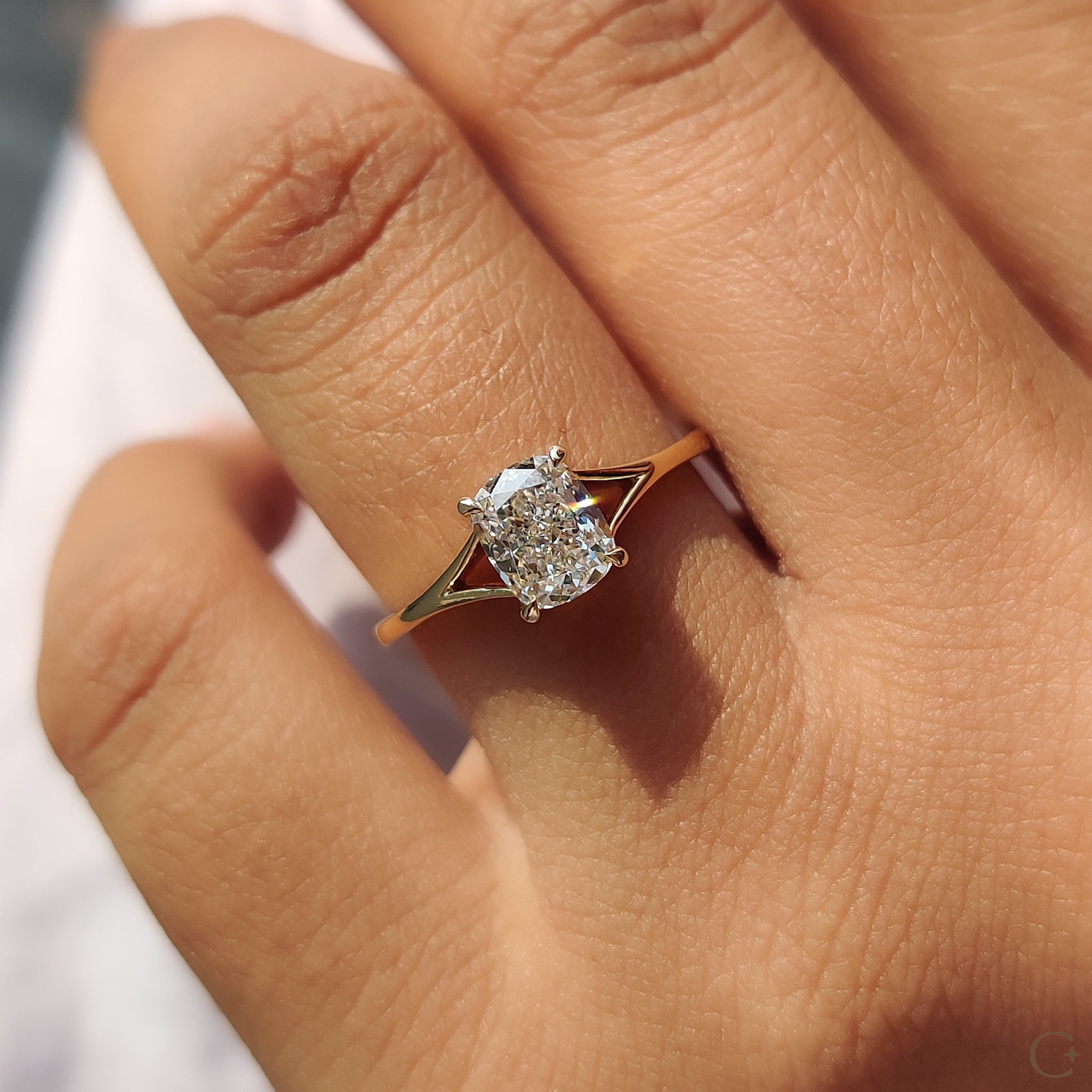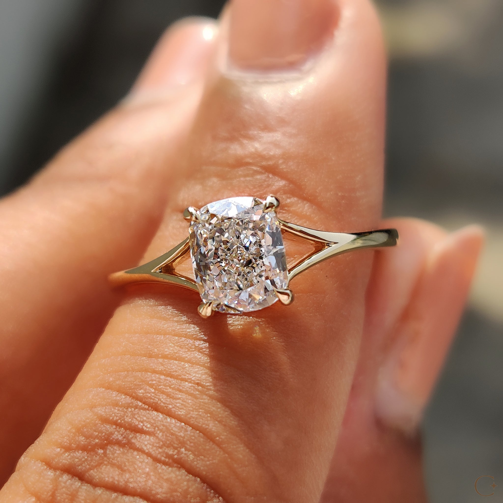Customize the cushion diamond ring to fit your style to design your own engagement ring. To be very distinctive, choose a diamond size, ring metal, and mounting style. Your ring will show your own taste whether your preferred design is split shank ring or a solitaire one. Today, personalize your engagement ring to have the ideal symbol of your love.