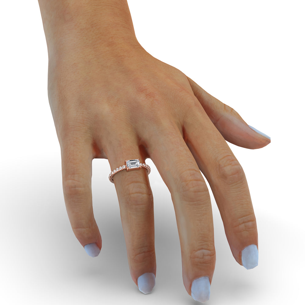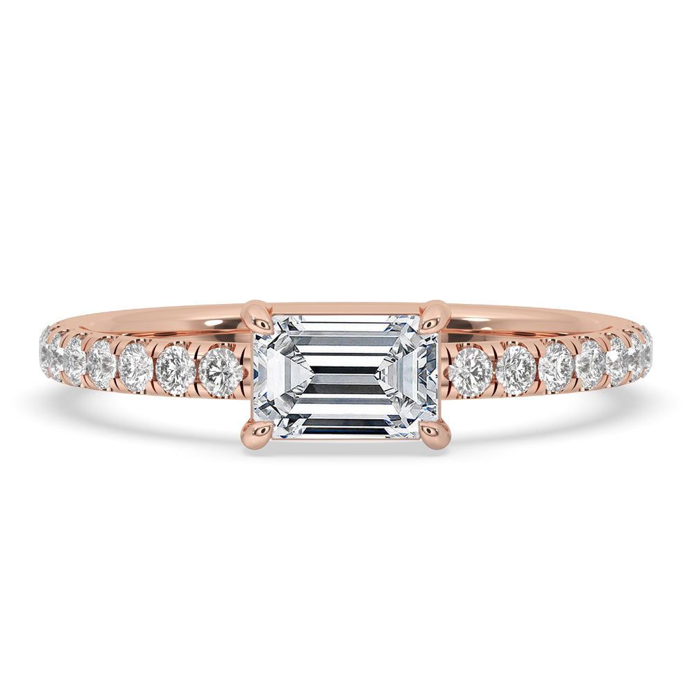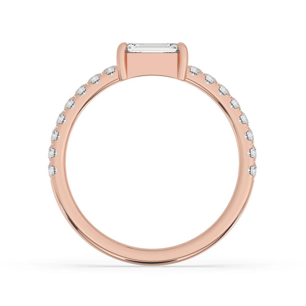 For someone looking for a distinctive and modern take on classic elegance, the East West Emerald Cut Ring is an amazing option. This amazing ring has a unique and striking design with a brilliantly placed emerald cut diamond orientated horizontally. With its elegant look and fit for commemorating love or significant events, the east west setting ring or emerald cut engagement ring really stands out.