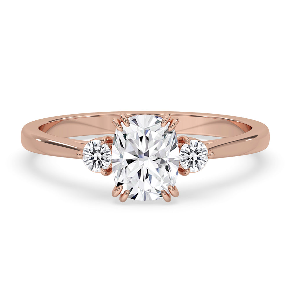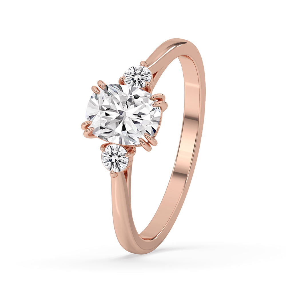 Choose a Lab Grown Diamond or real diamond to customize your Elongated Cushion Engagement Ring. Likewise, to make a magnificent ring, choose white gold, yellow gold, or rose gold. Furthermore customizing your design is possible by choosing from several three stone ring settings.