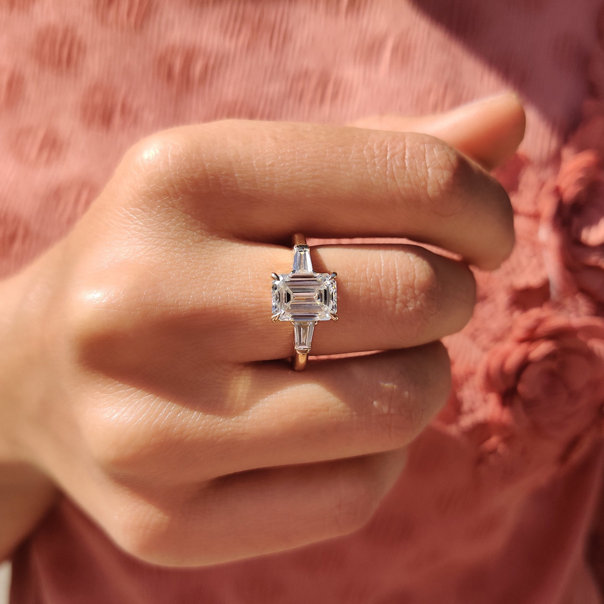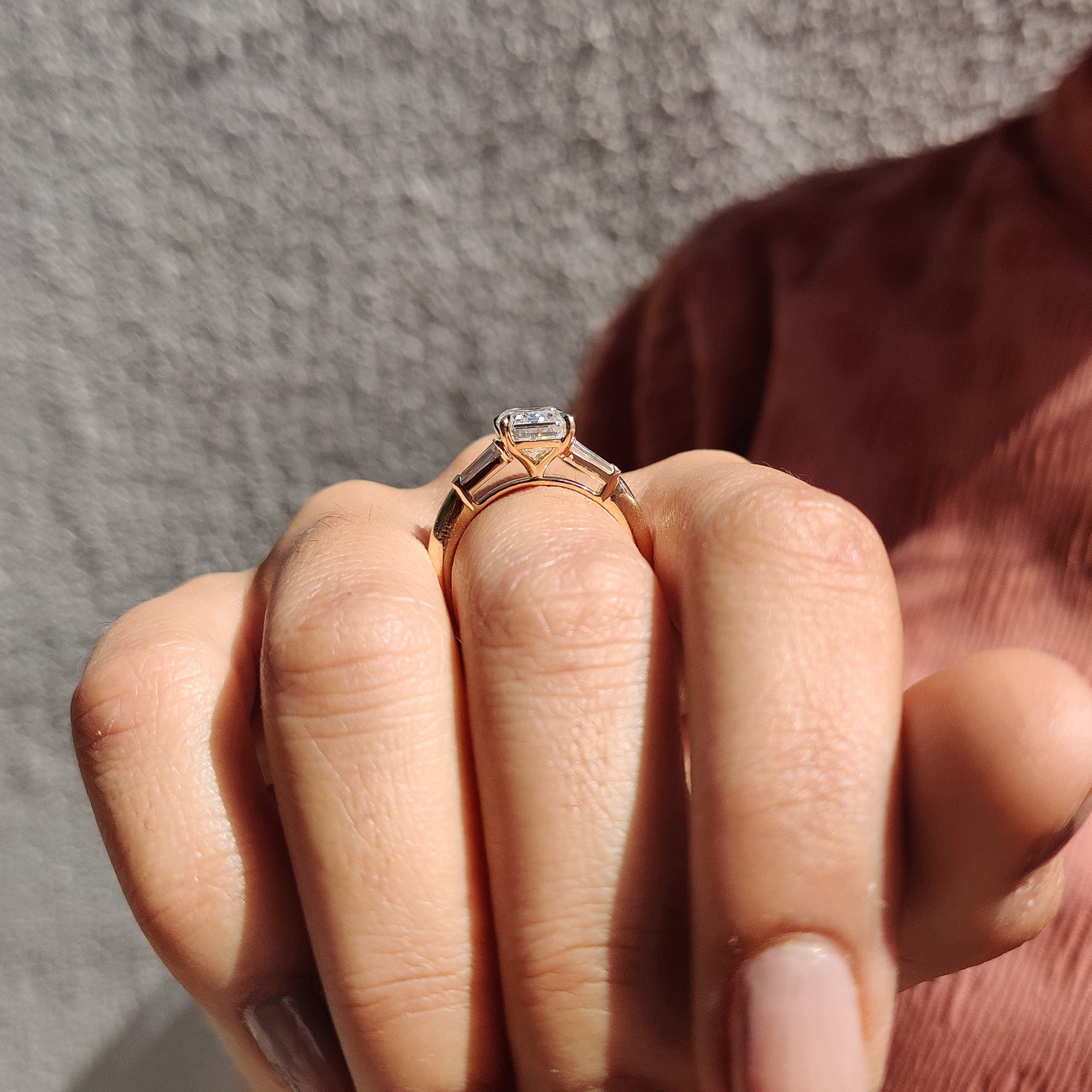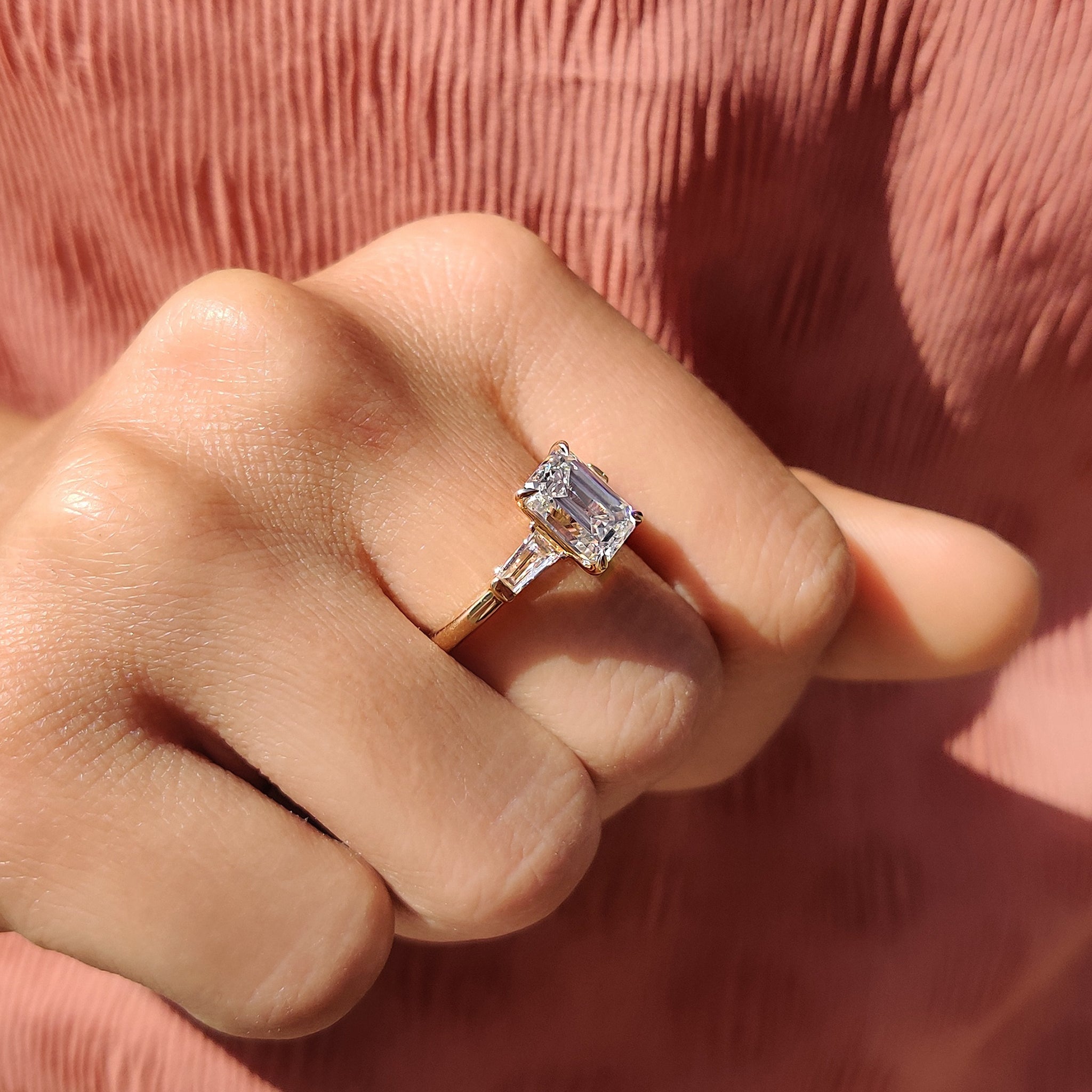Emerald Cut Ring With Tapered Baguette Side Stone