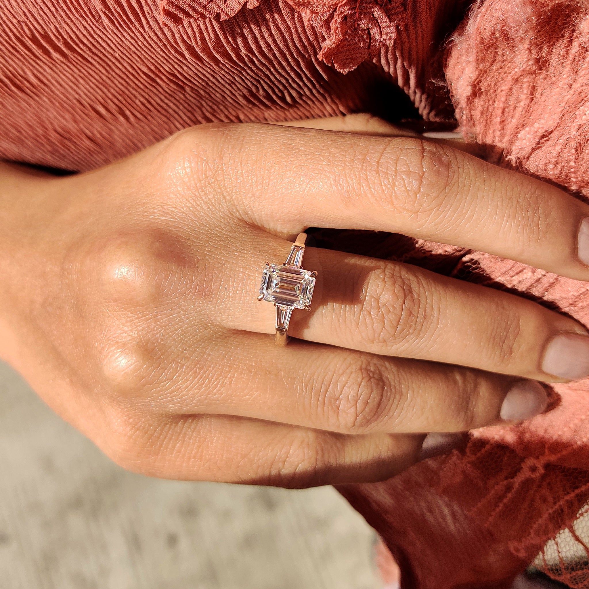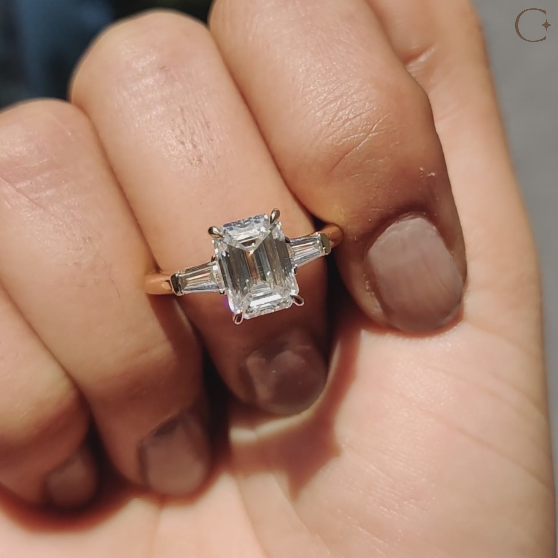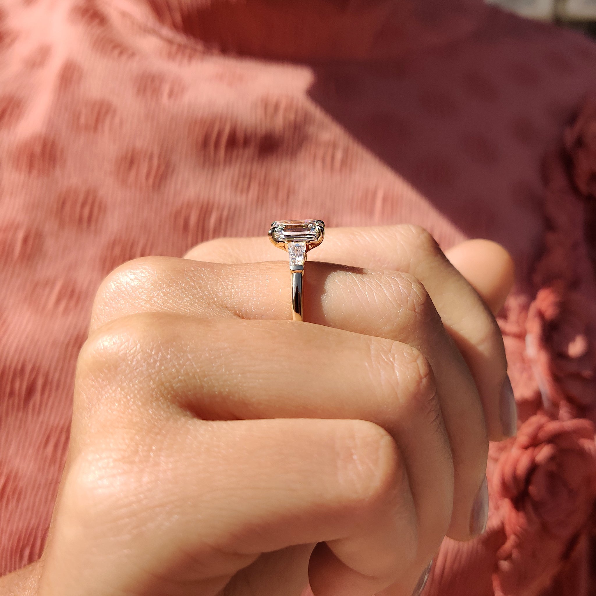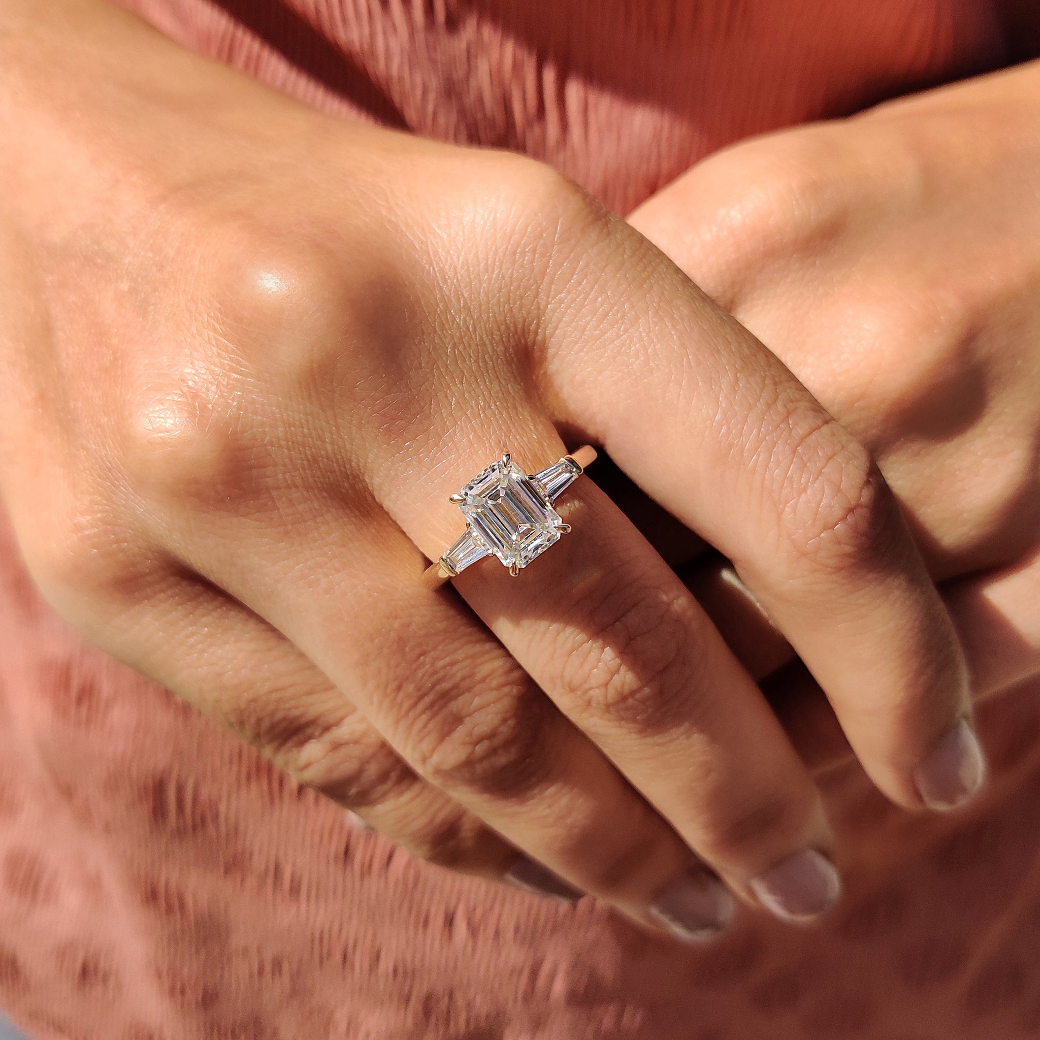 Emerald Cut Ring With Tapered Baguette Side Stone