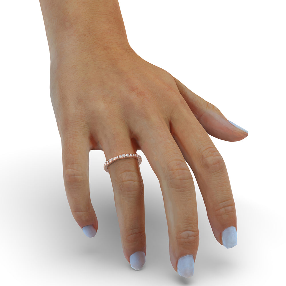 The half eternity ring is the ideal fusion of traditional beauty and contemporary refinement. Perfectly crafted, this ring boasts a beautiful round cut diamond. Wearing alone or as an engagement ring and wedding band, this beautiful item fits any occasion. The half eternity wedding band fits any taste since it is charming and robust.
