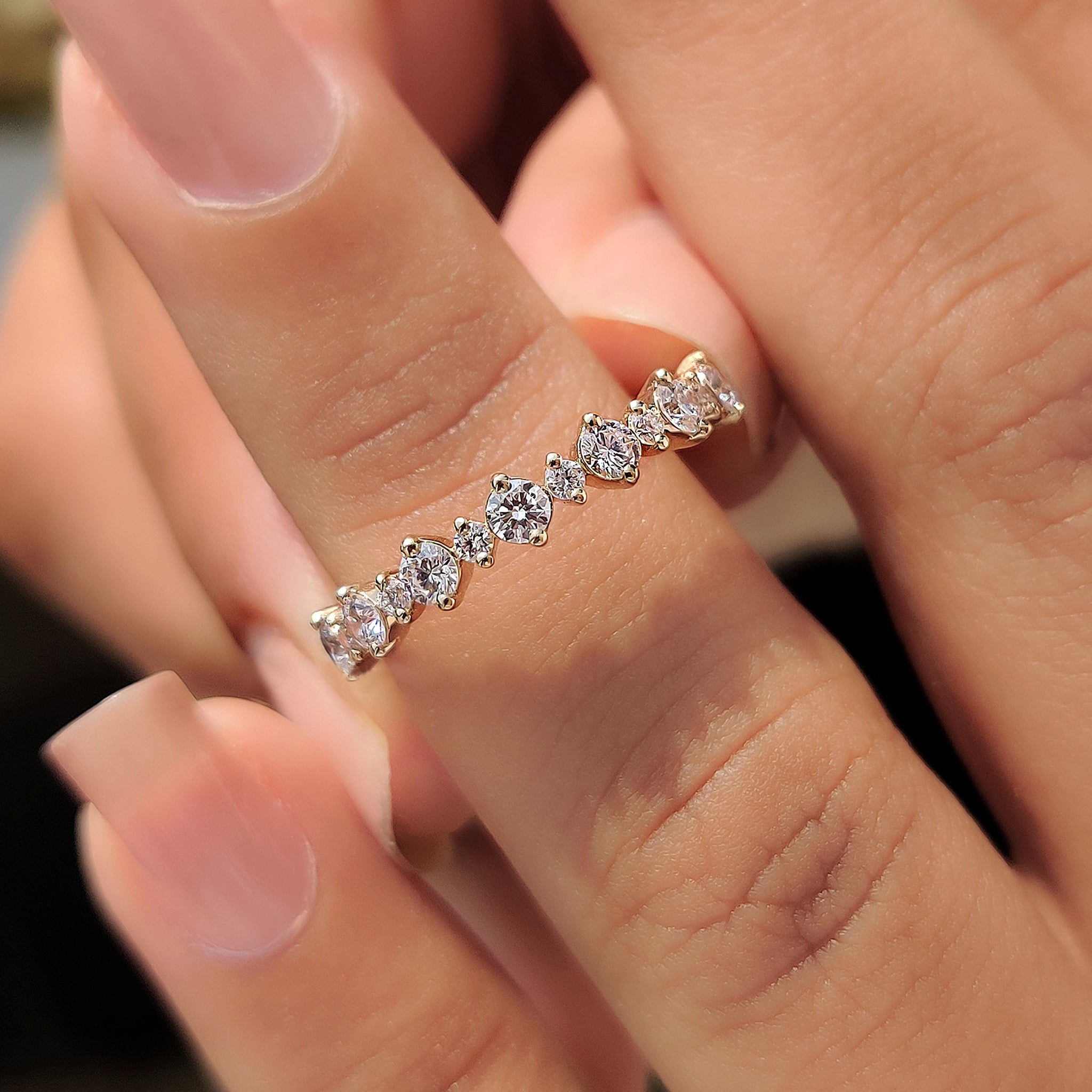 Half Eternity Wedding Band with round cut diamonds for a luxurious look.