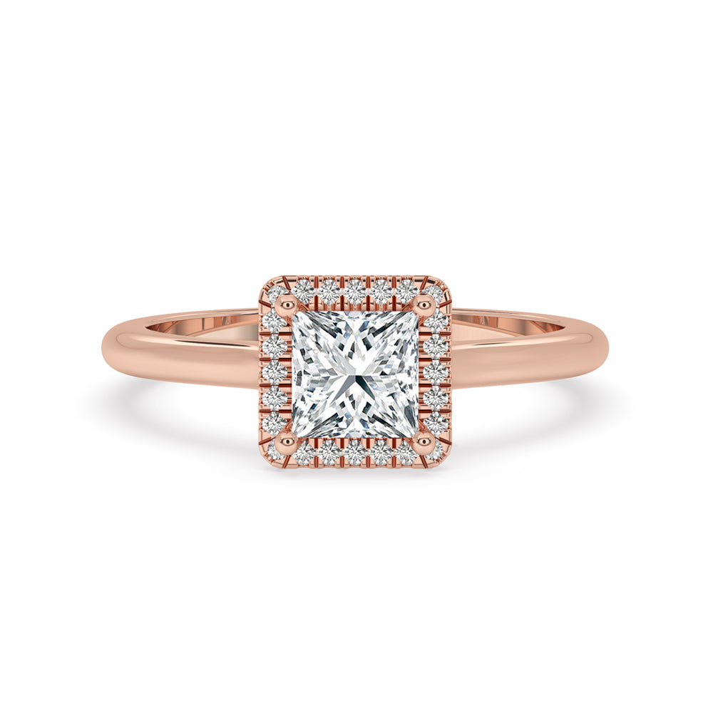 The core of modern romance is encapsulate in this princess cut diamond engagement ring. With its halo of diamonds, the amazing design provides a fresh interpretation of a traditional style. Whether your preference is for a classic round diamond or a ring with princess cut diamond, the halo setting offers an eye-catching element that grabs attention.