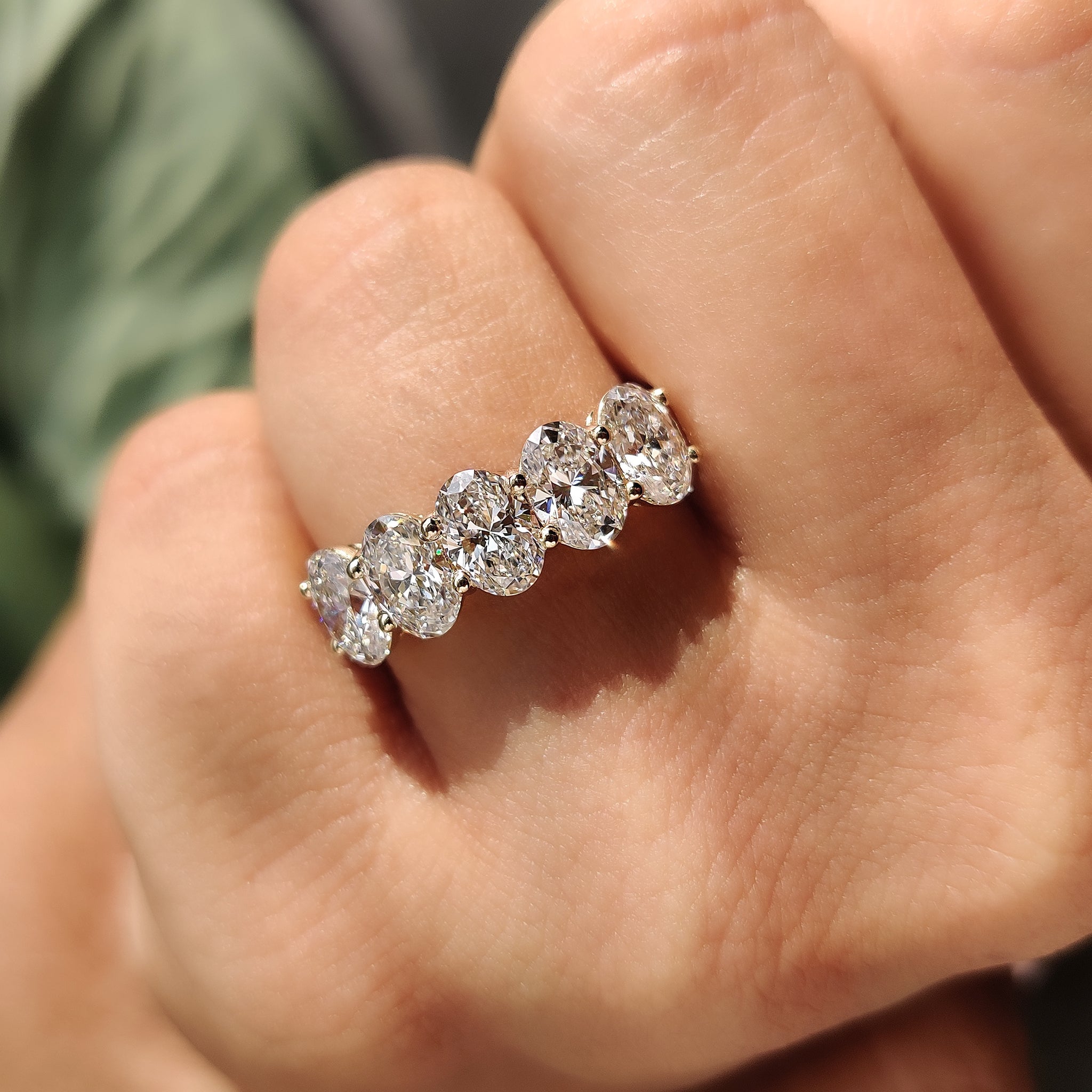 5 stone oval diamond band for maximum brilliance.