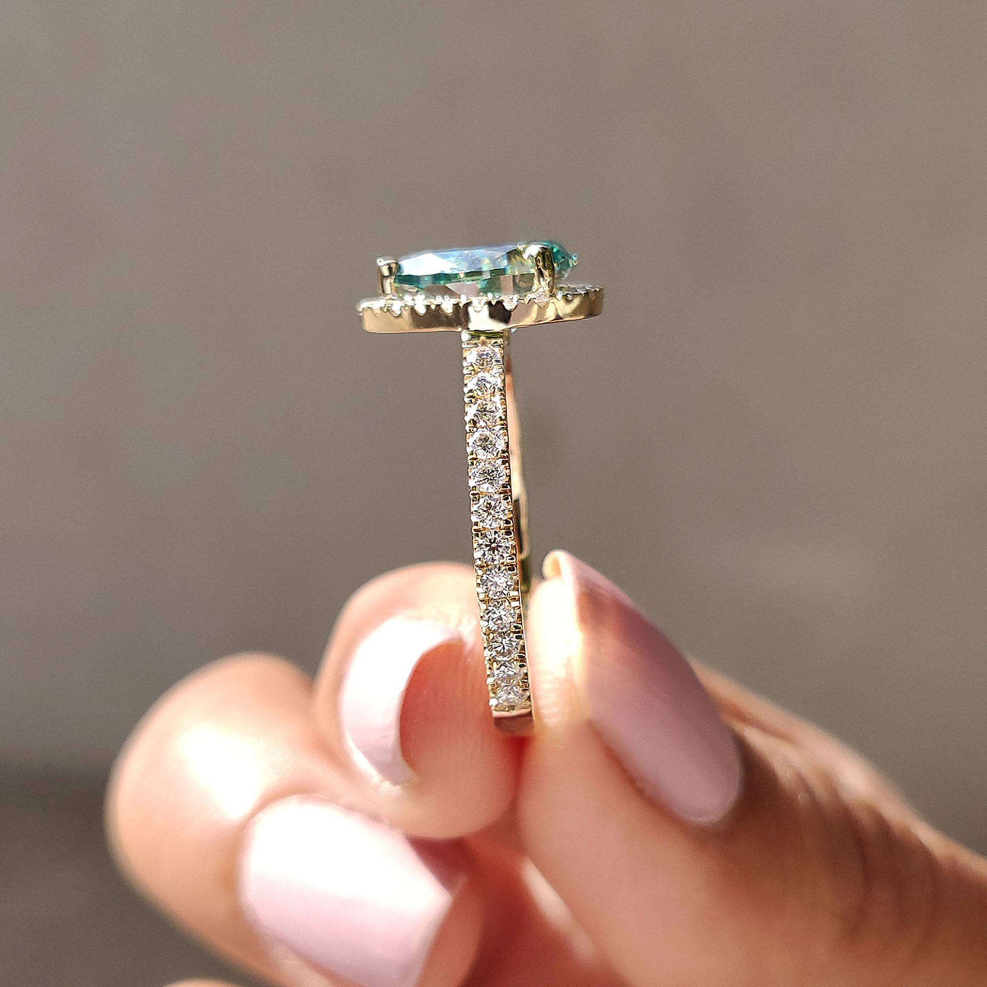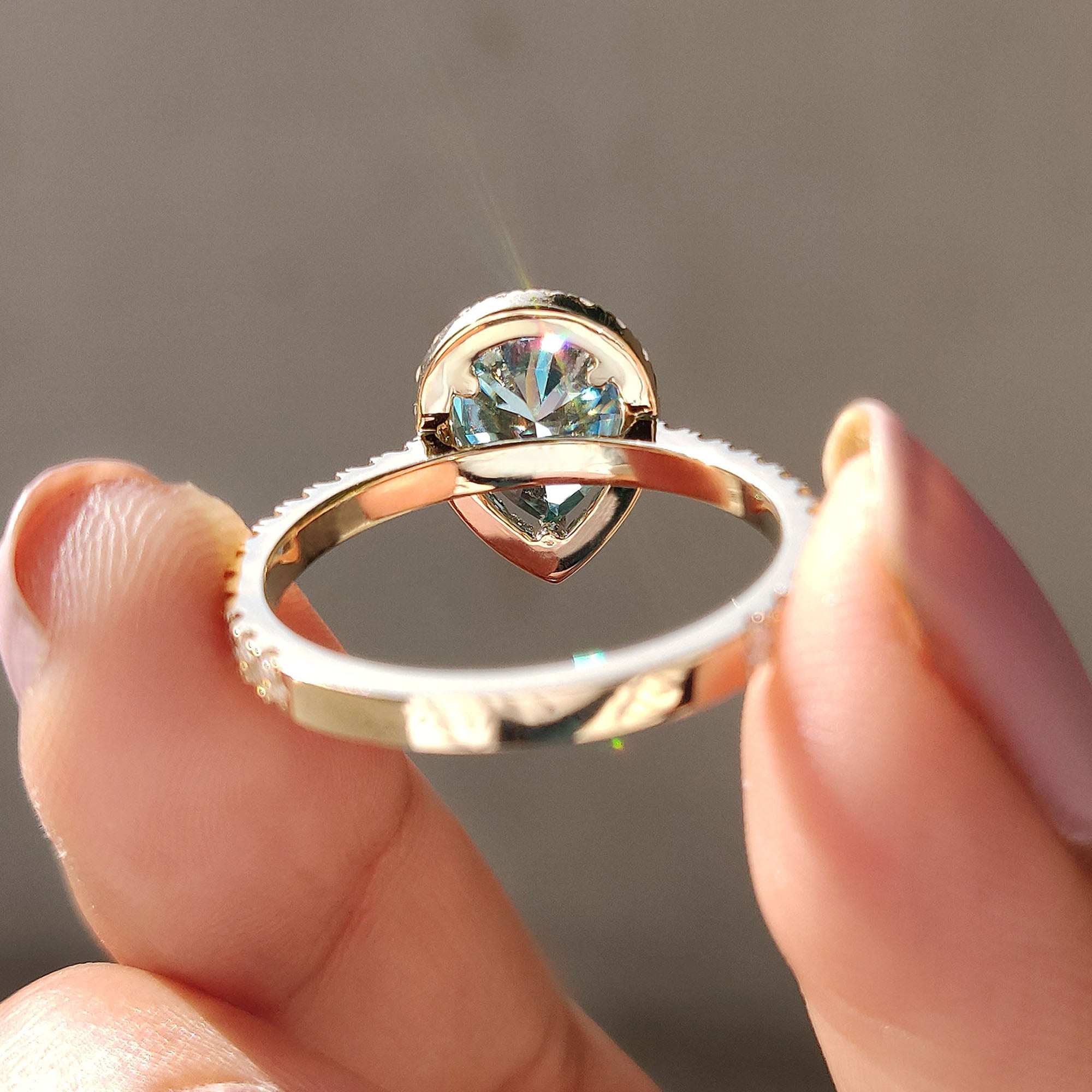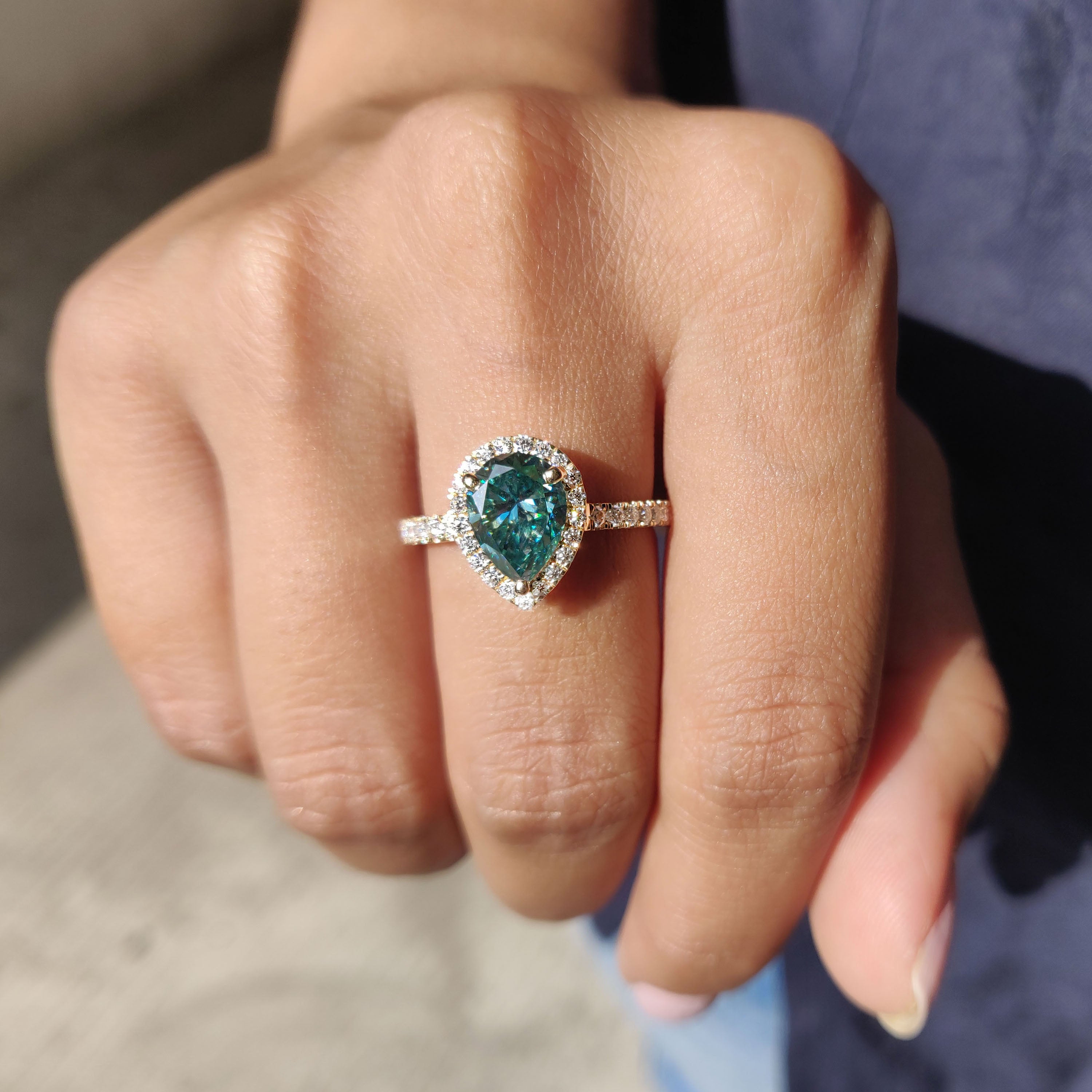 Choose from a variety of stones, including pear cut Moissanite ring. You could also choose a setting like a pave engagement ring or a halo engagement ring. For an extra special touch, personalize your handcrafted ring with engraving to produce a really unusual and unforgettable work of art.