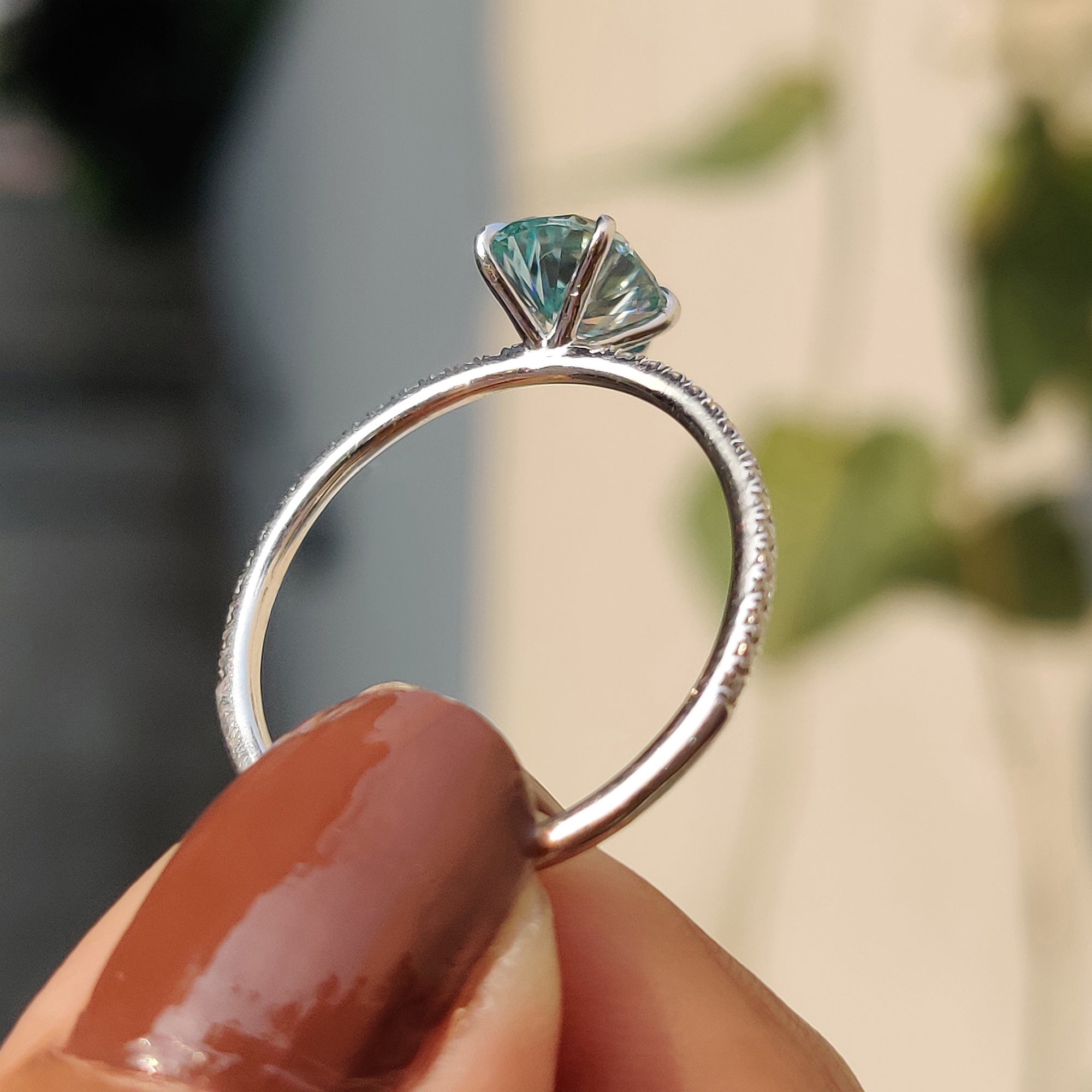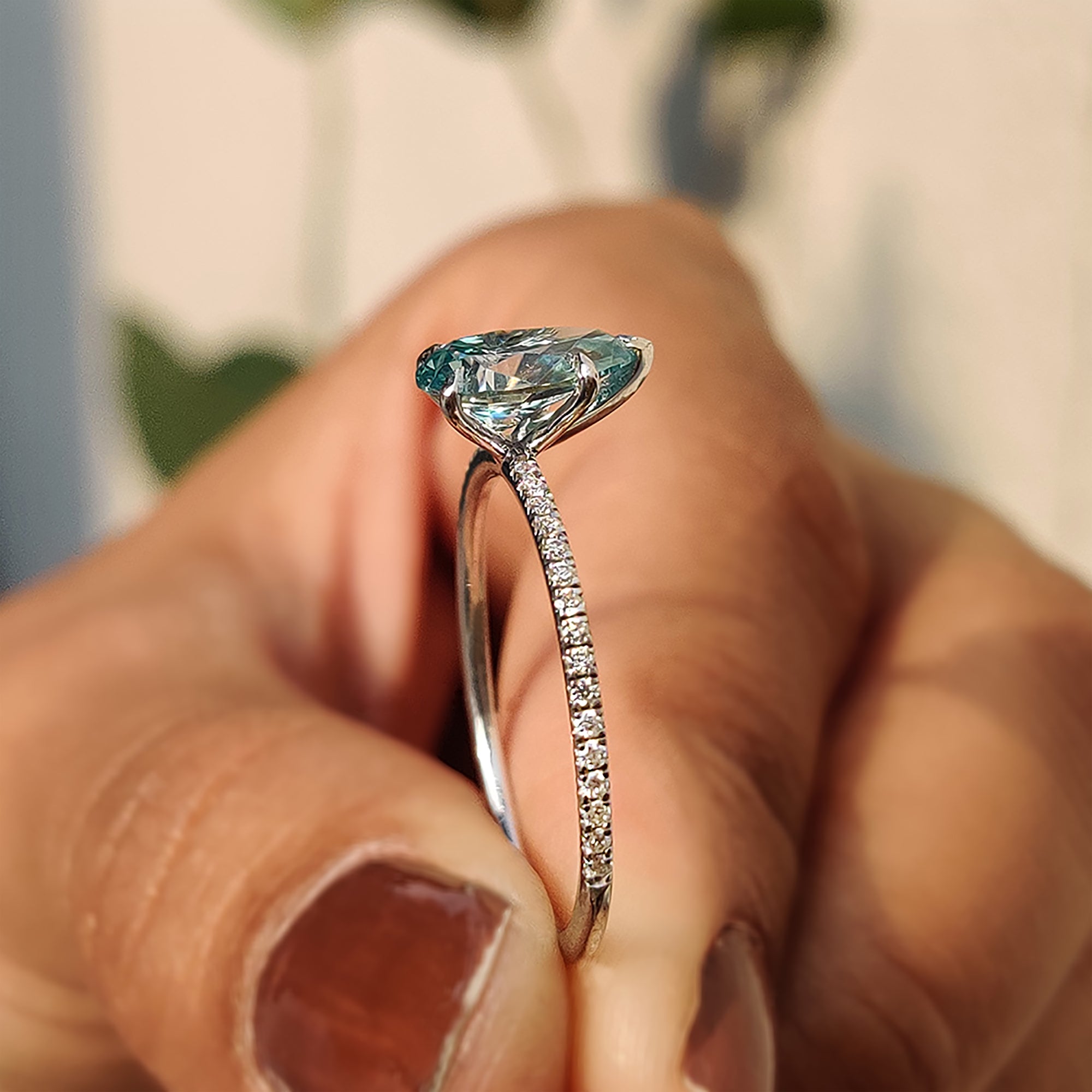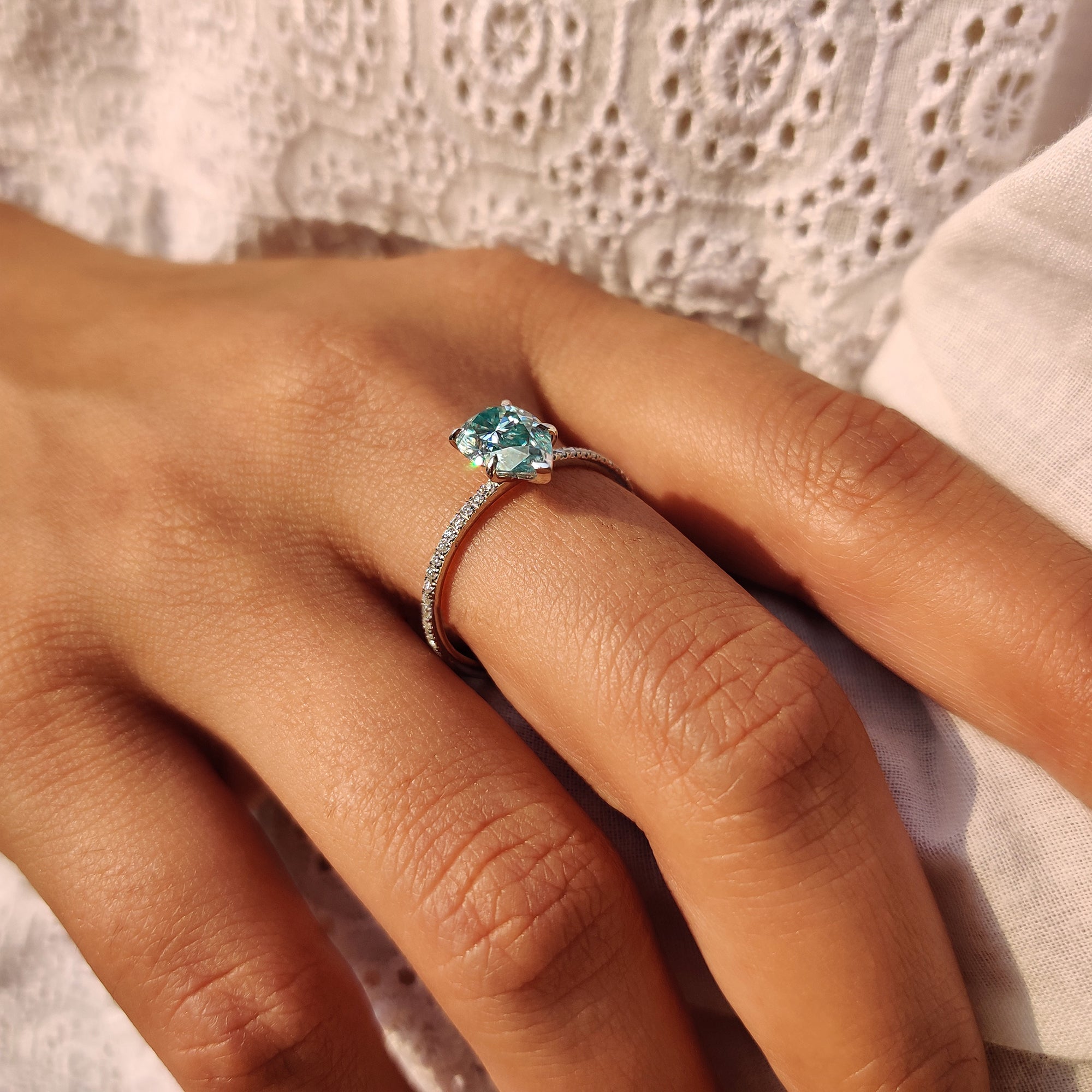 - Available in white gold engagement ring and cyan blue ring options