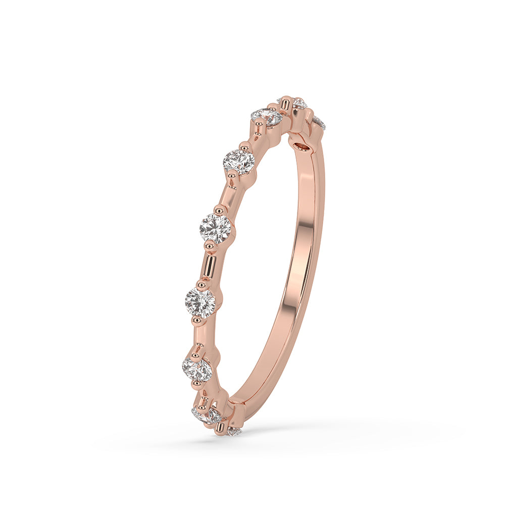 Create a very original rose gold diamond band. Choose from many carat weights, customize the half eternity band of rose gold, or change the round cut diamond size. Every handcrafted band guarantees a unique design since it is created with accuracy.
