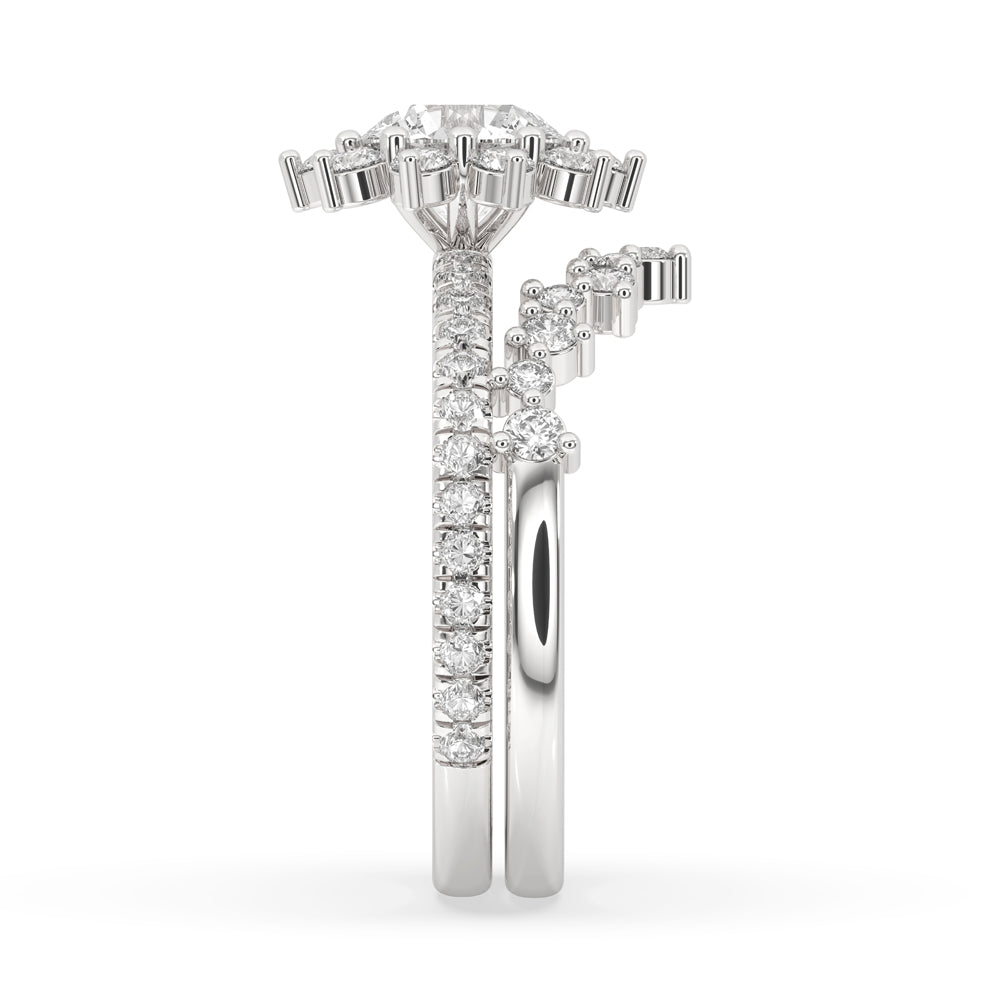 Customize your ring to celebrate your own tale. Reflect your style by including a Lab Grown Diamond, choose a gold chevron band, or a diamond cluster ring. Every piece is create to fit and guarantees a unique touch.
