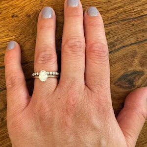 This premium moissanite engagement ring is light-weight yet robust. Per carat, the oval cut moissanite ring seems bigger and reflects more light. Using a six-prong ring configuration, the center remains stable and shapes itself well. Especially for a brilliant moissanite ring, the yellow gold engagement ring band provides contrast and warms the finished look.
