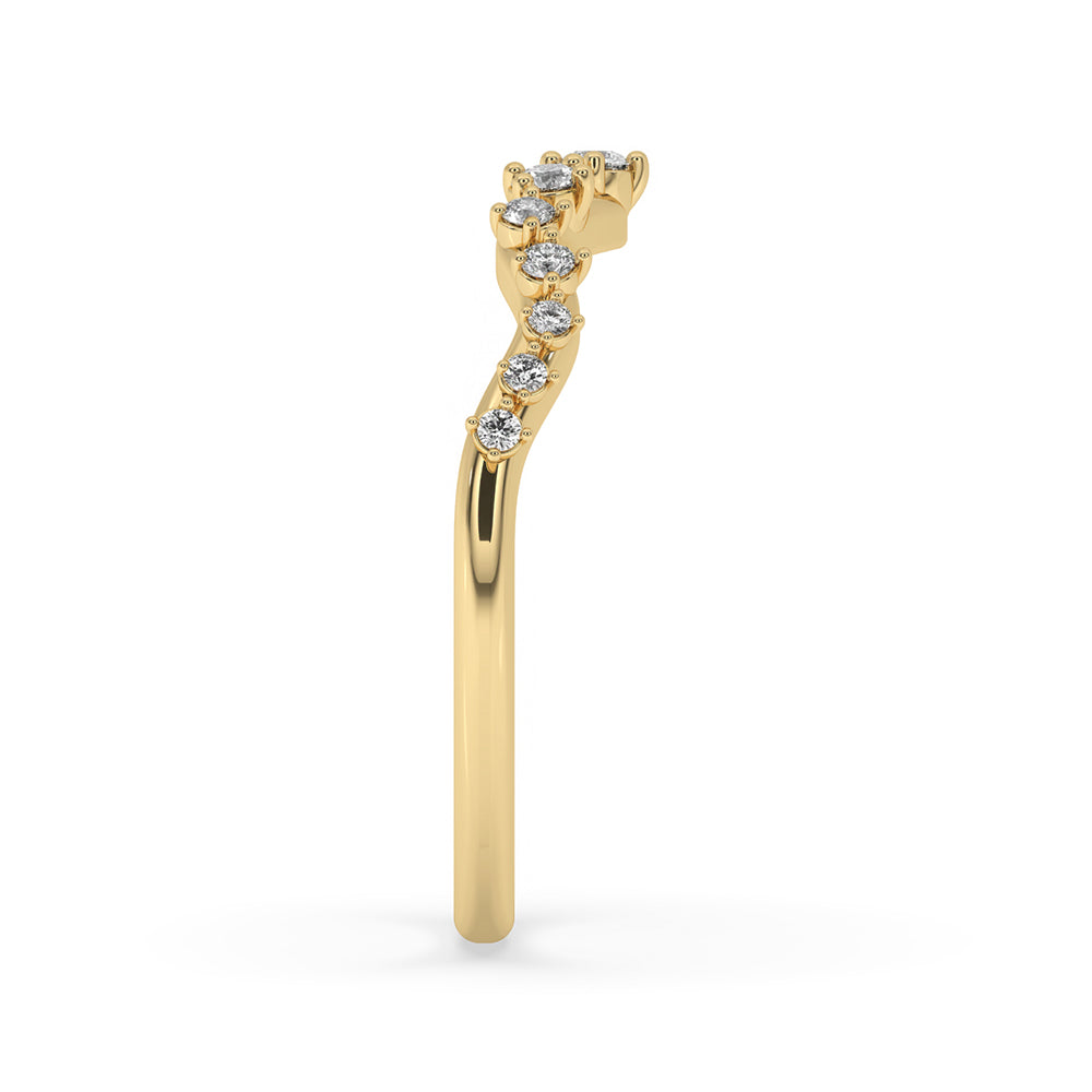 Your special day gains unparalleled grace from the Tiara Wedding Band Yellow Gold. Its brilliant round cut diamonds really accentuate any engagement ring. This timeless addition to your jewelry collection combines classic appeal with contemporary workmanship in this diamond wedding band. Perfect for weddings, anniversaries, or as a sincere present, this band honors genuine love.