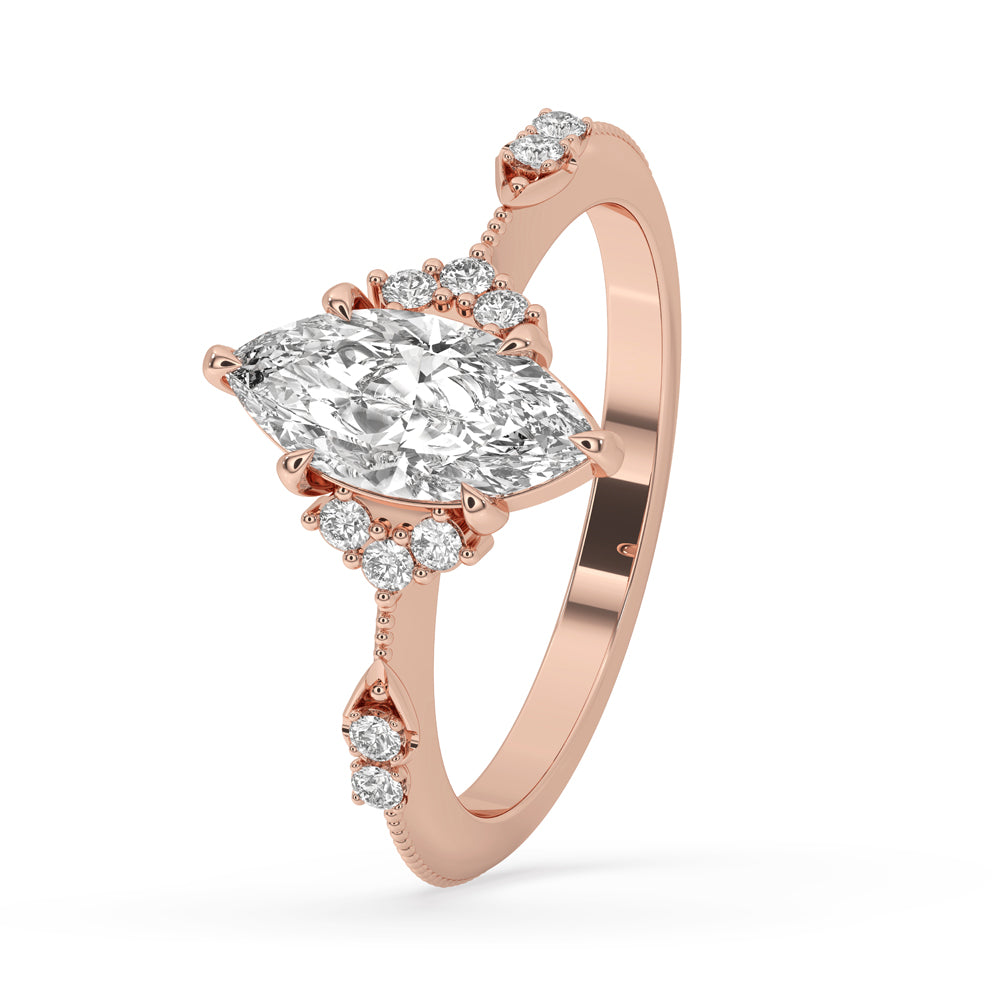 - Timeless Marquise Cut Diamond: The marquise diamond shape offers a distinct, elongated silhouette, highlighting the vintage charm.