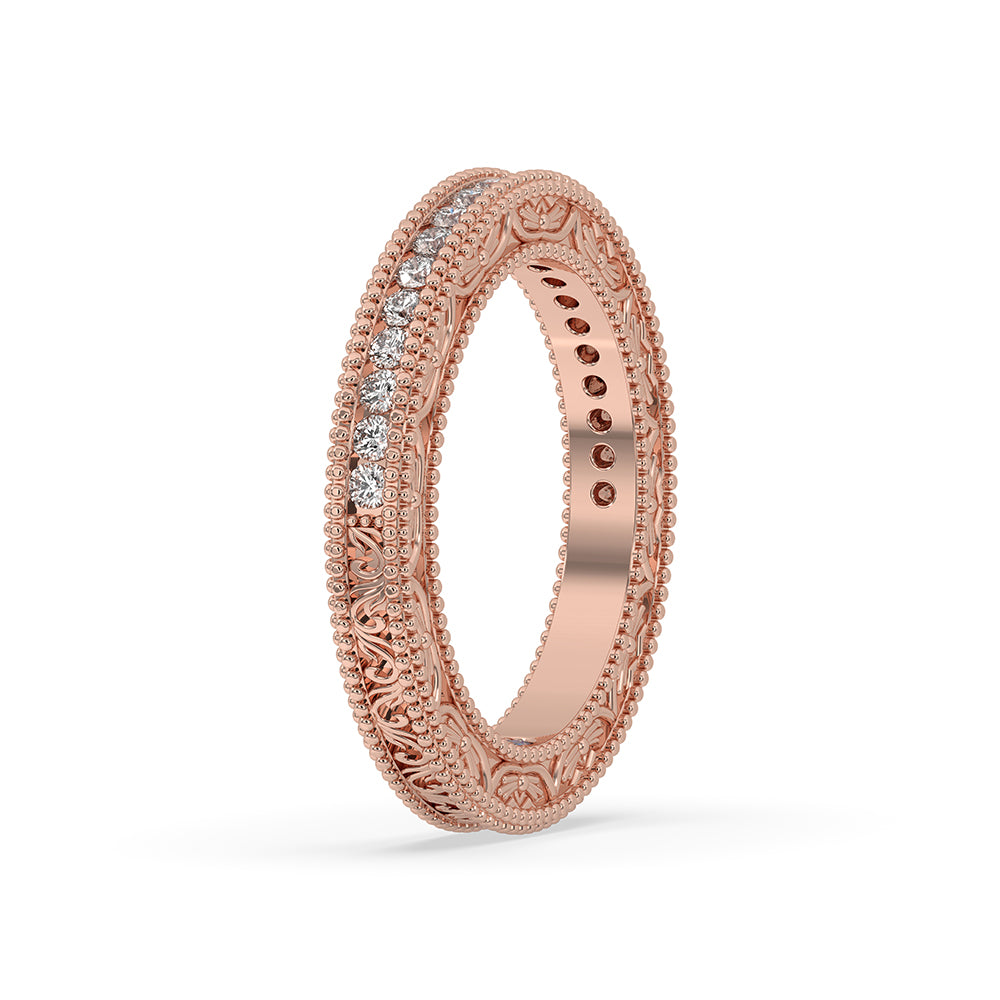 Offering a timeless design, a vintage wedding band is the ideal mix of history and modern elegance. This vintage wedding band is a great addition to any collection since its exquisite decoration and workmanship reflect their nature. Its graceful filigree wedding band style lends elegance and refinement. Whether your dream wedding band is milgrain or rose gold, both choices accentuate your unique day.