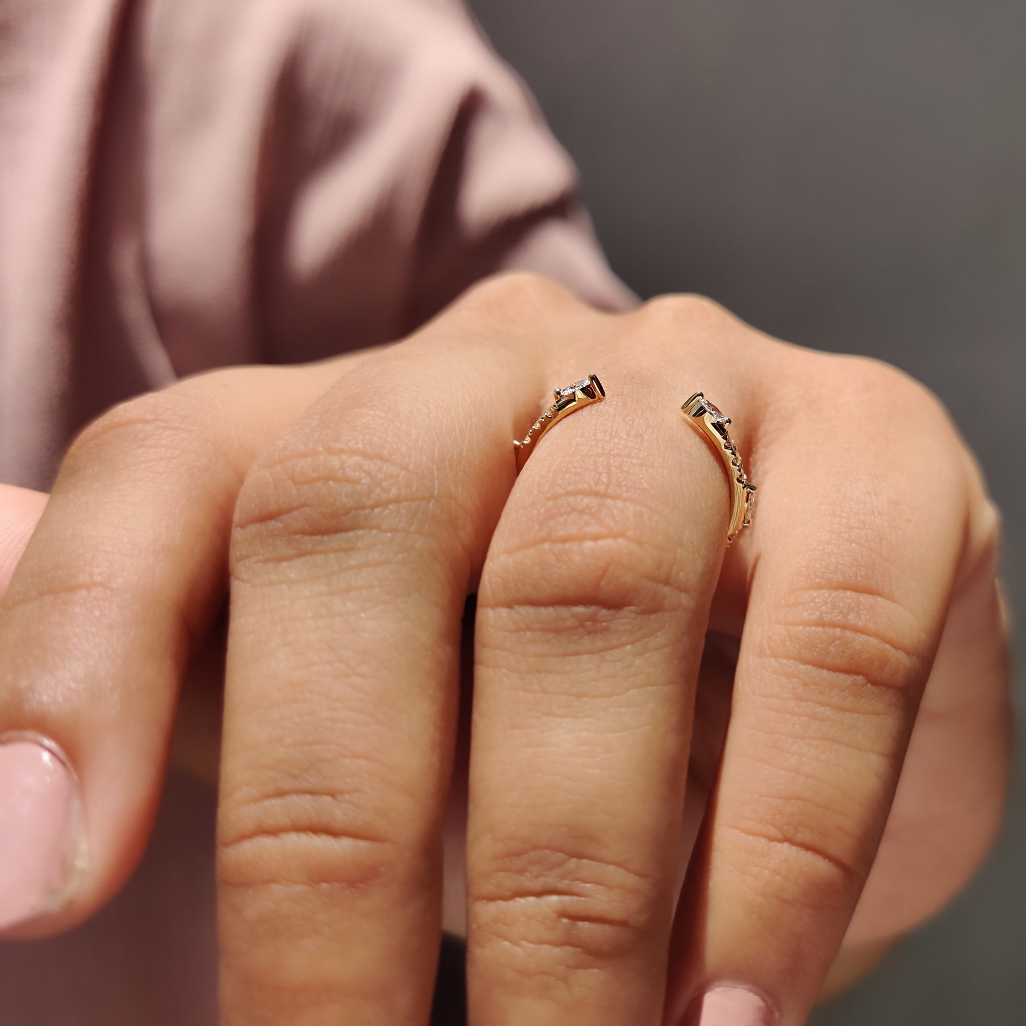 Marquise And Round Cut Yellow Gold Diamond Band